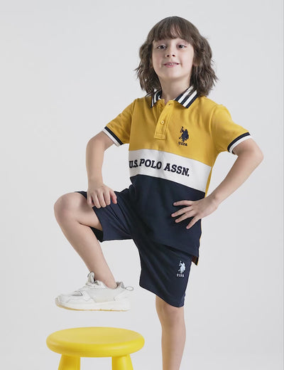 Boys Colour Blocked Pure Cotton Polo Shirt