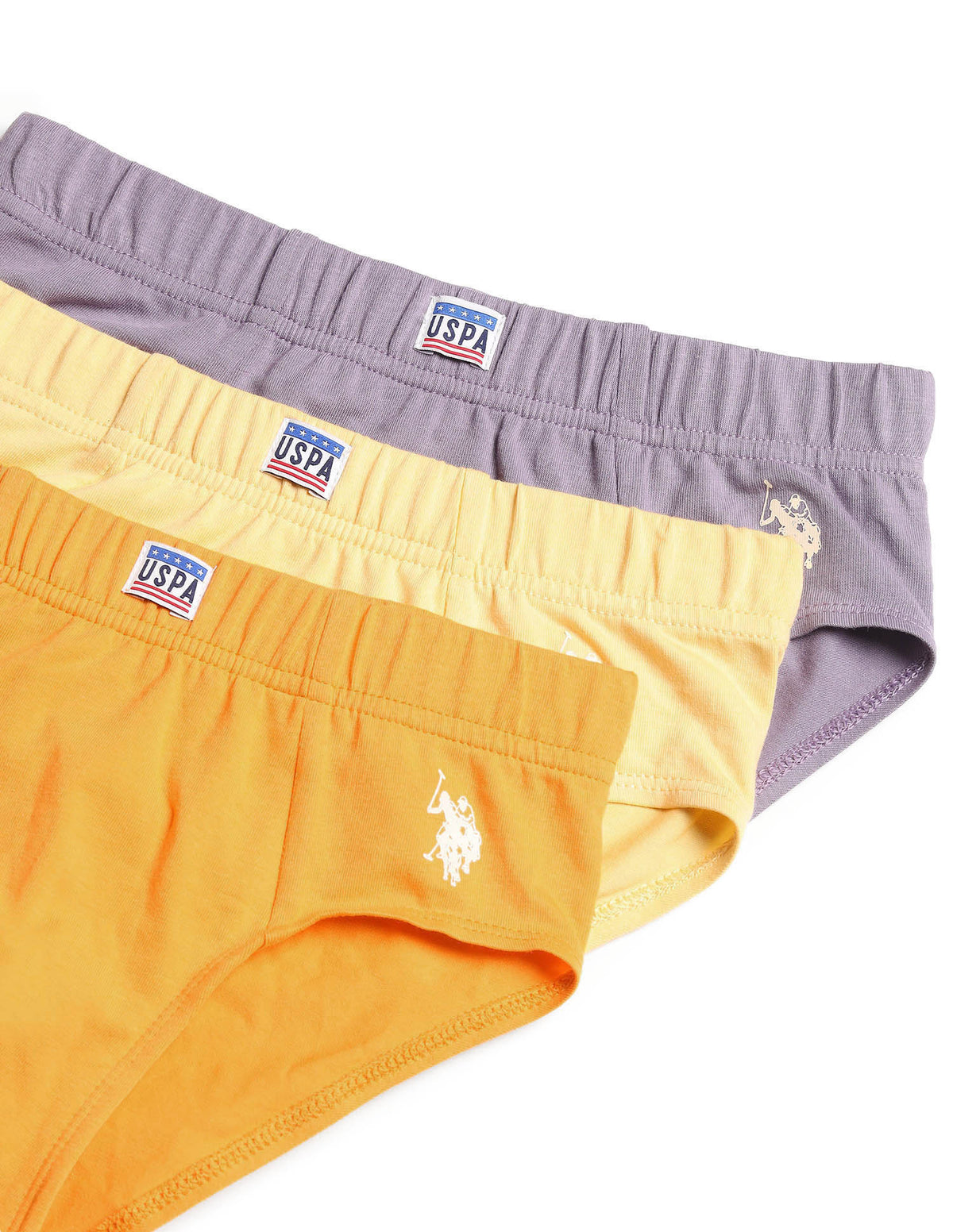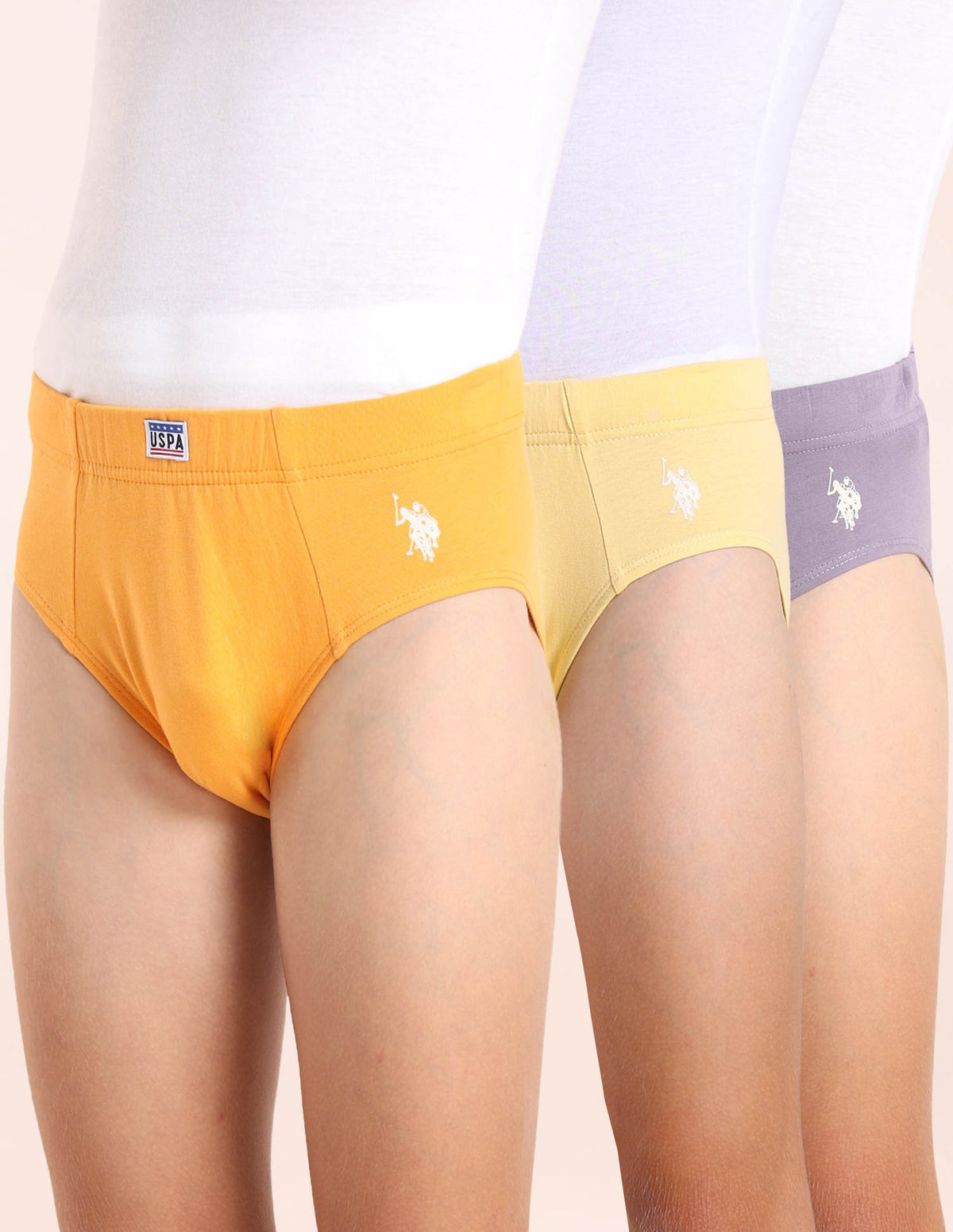 Boys Cotton Spandex Solid Briefs - Pack Of 3