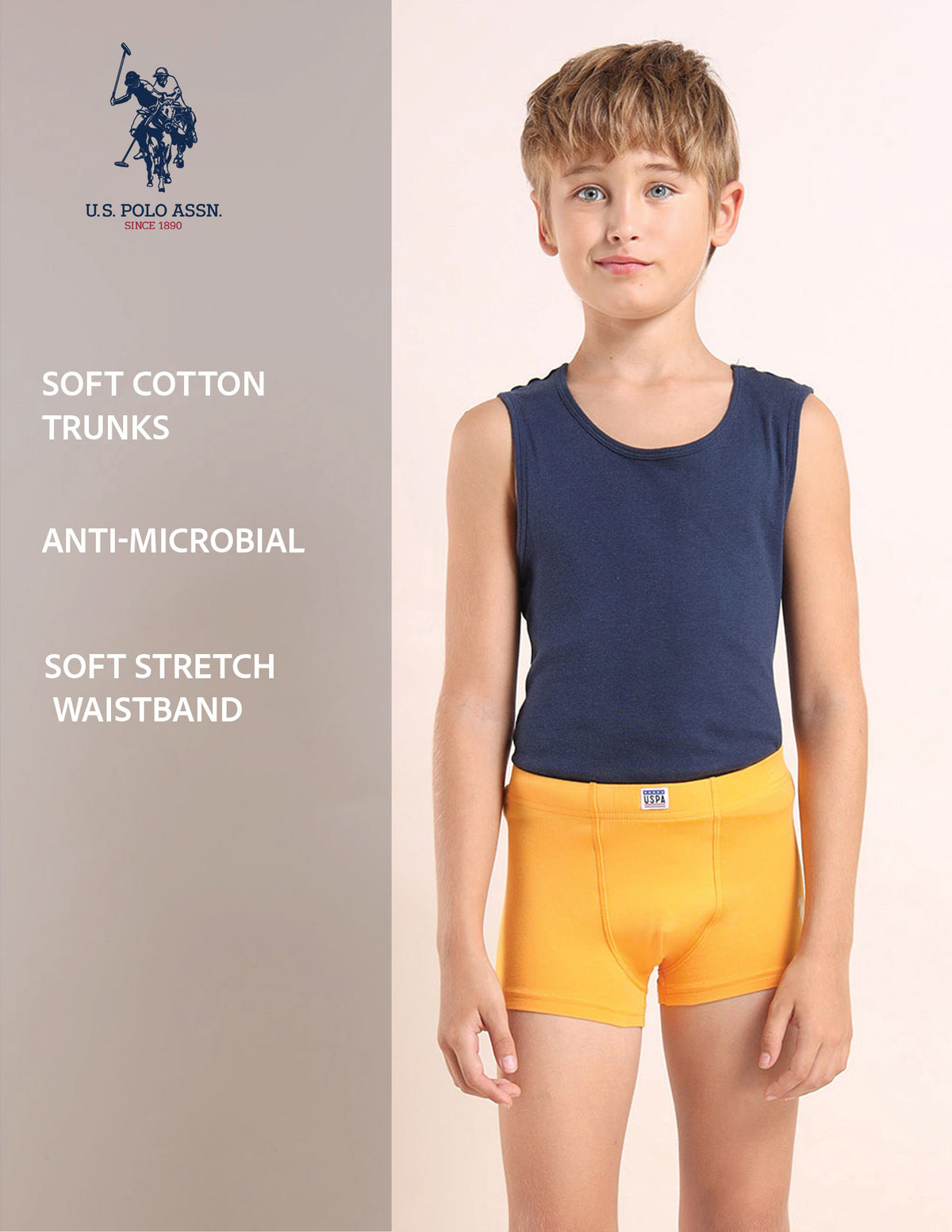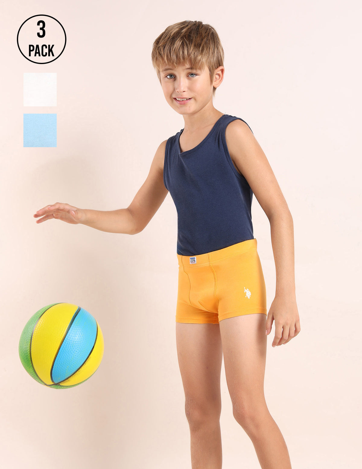 Boys Cotton Spandex Solid Trunks - Pack Of 3