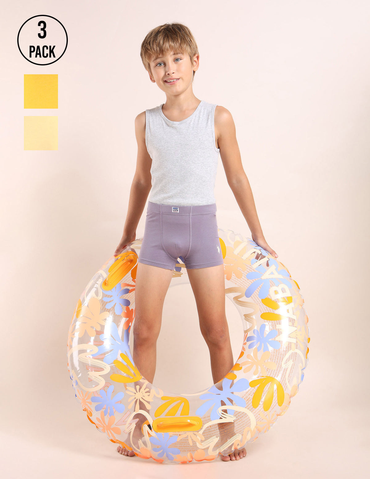 Boys Cotton Spandex Solid Trunks - Pack Of 3