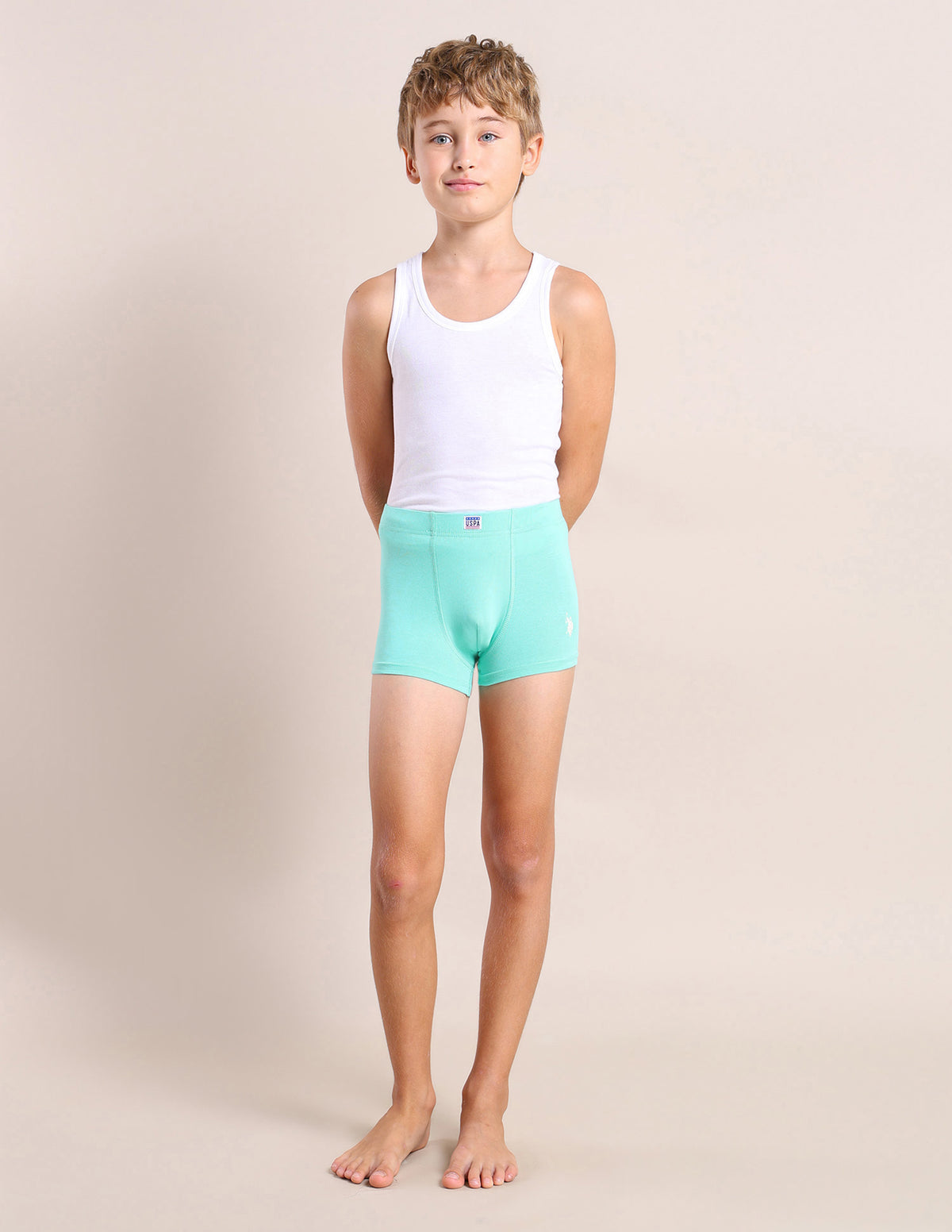 Boys Cotton Spandex Solid Trunks - Pack Of 3