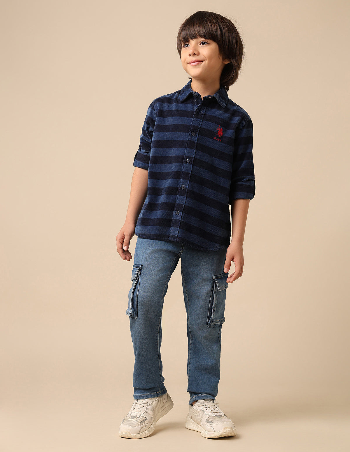 Story: Boys' casual shirts with horizontal stripes, offering a classic look for everyday wear.