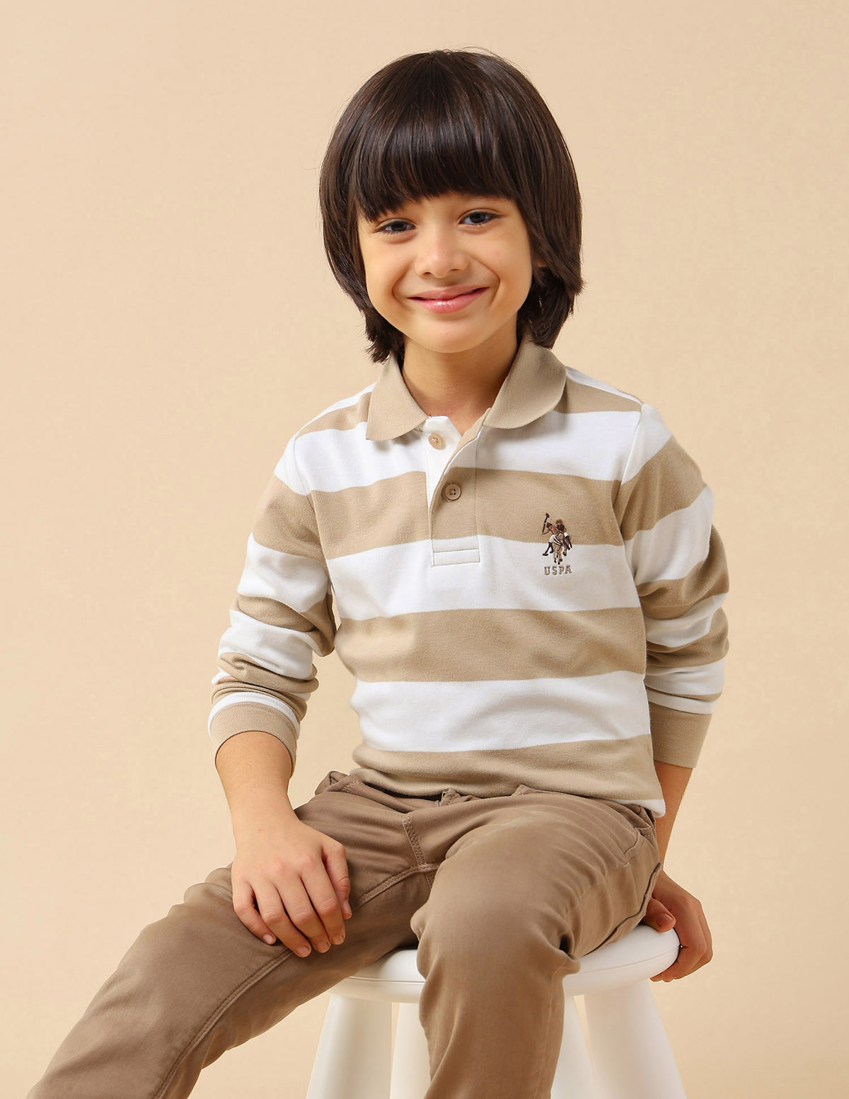 Boys Horizontal Striped Regular Fit Polo Shirt