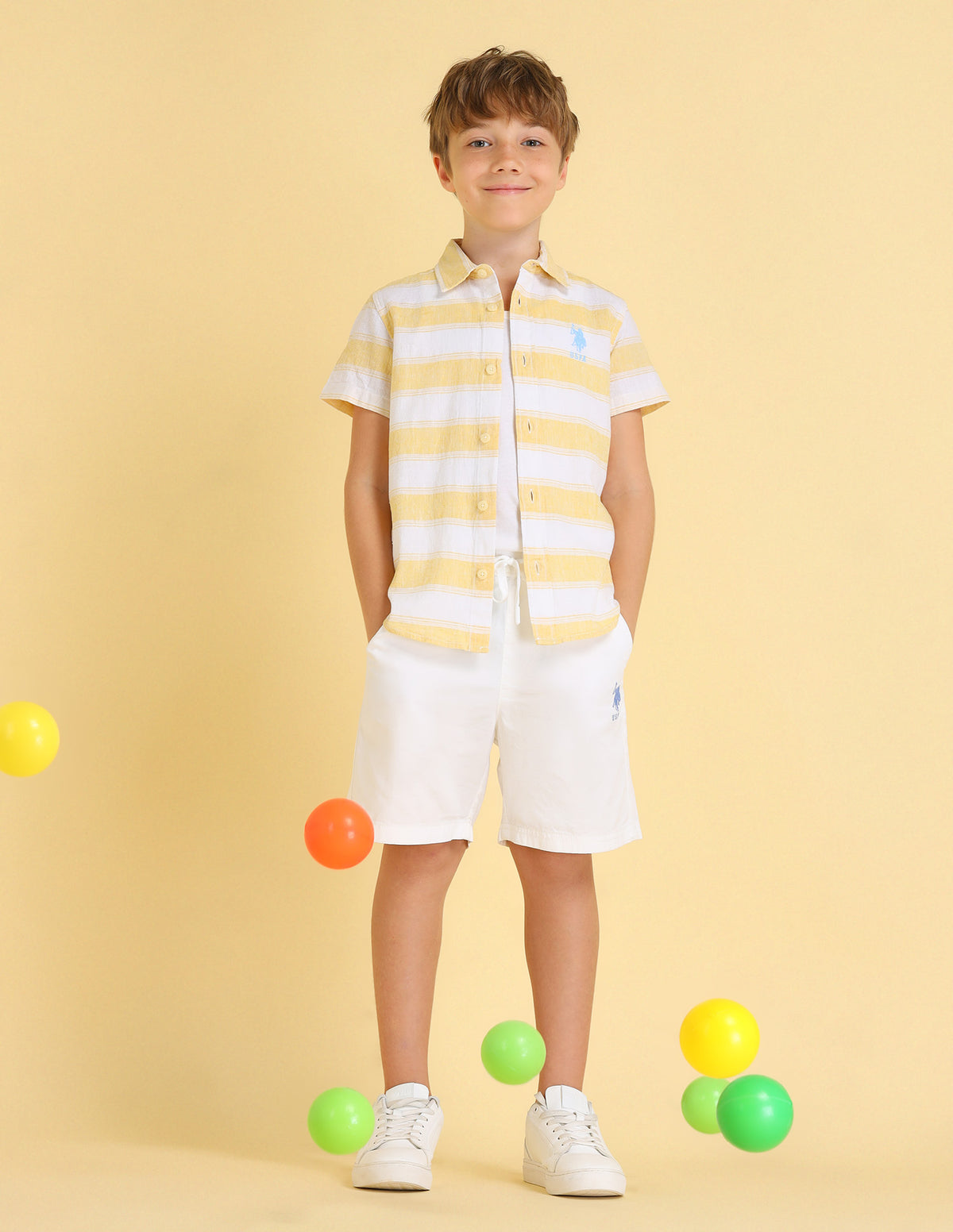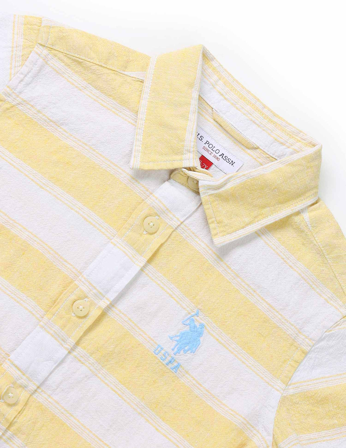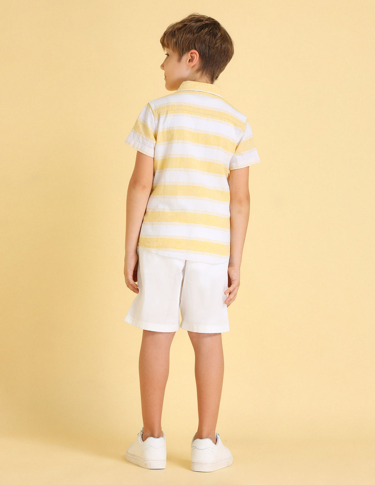 Story: Casual boys' shirt featuring horizontal stripes, great for a relaxed and trendy look.