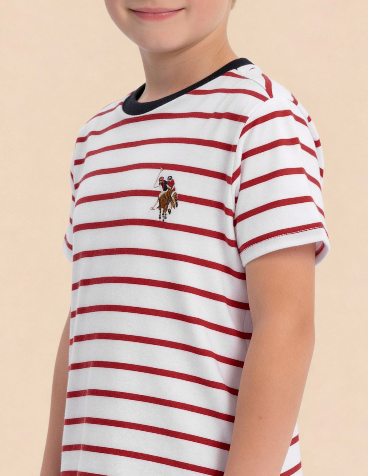 Story: This horizontal-striped T-shirt for boys delivers classic pattern appeal and casual comfort, ideal for everyday wear and playful weekend activities.