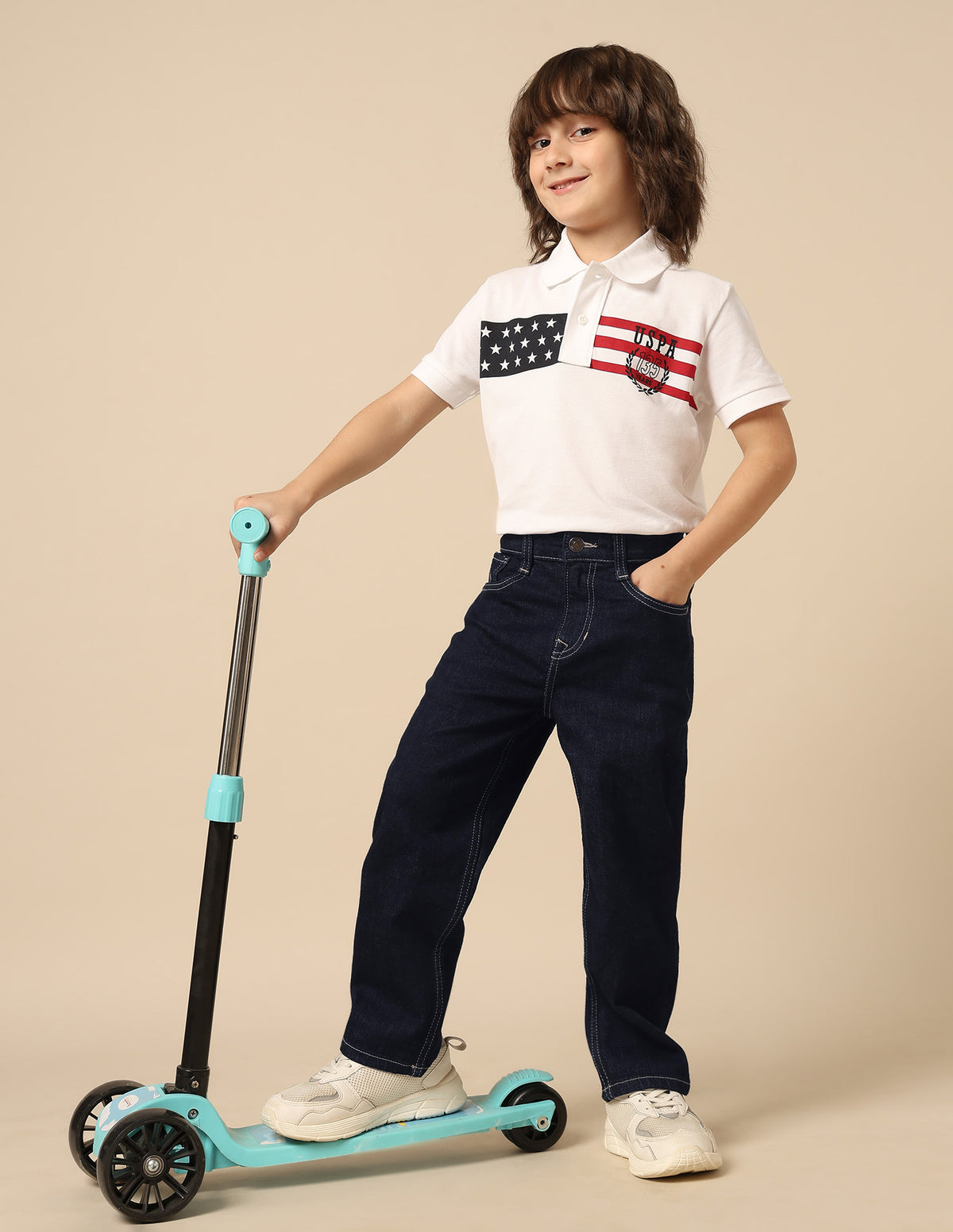 Story: Boys' solid casual jeans offer comfort and durability for everyday wear, ideal for active kids' various activities.