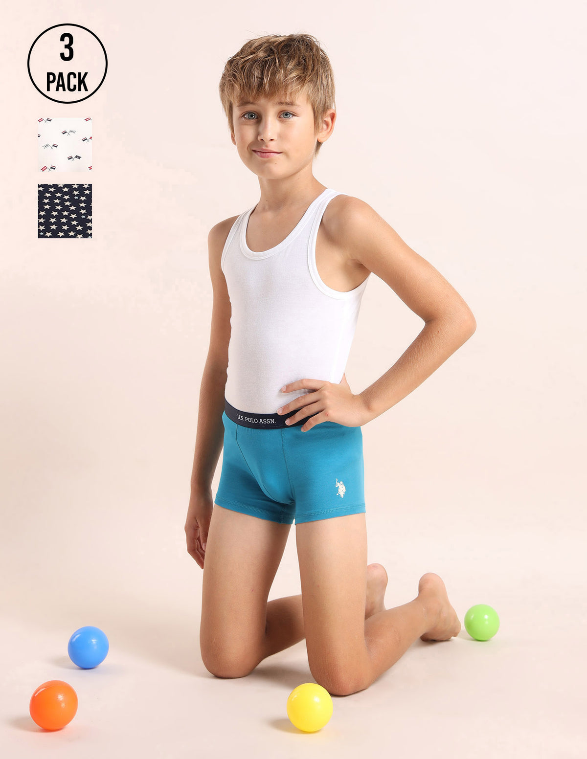 Boys Mid Rise Cotton Spandex Trunks - Pack Of 3