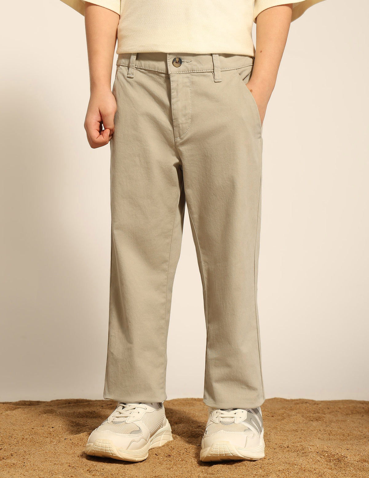 Story: Boys' solid od twill trousers, ideal for casual occasions with comfort and classic style.