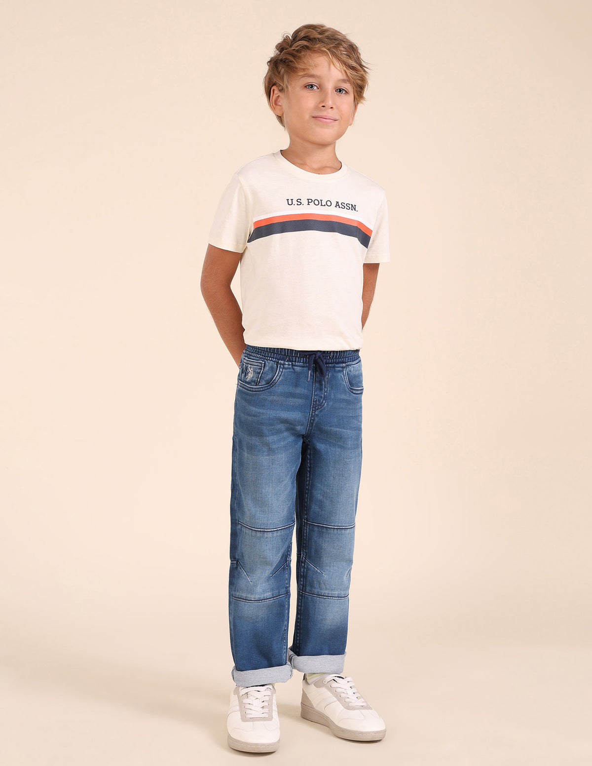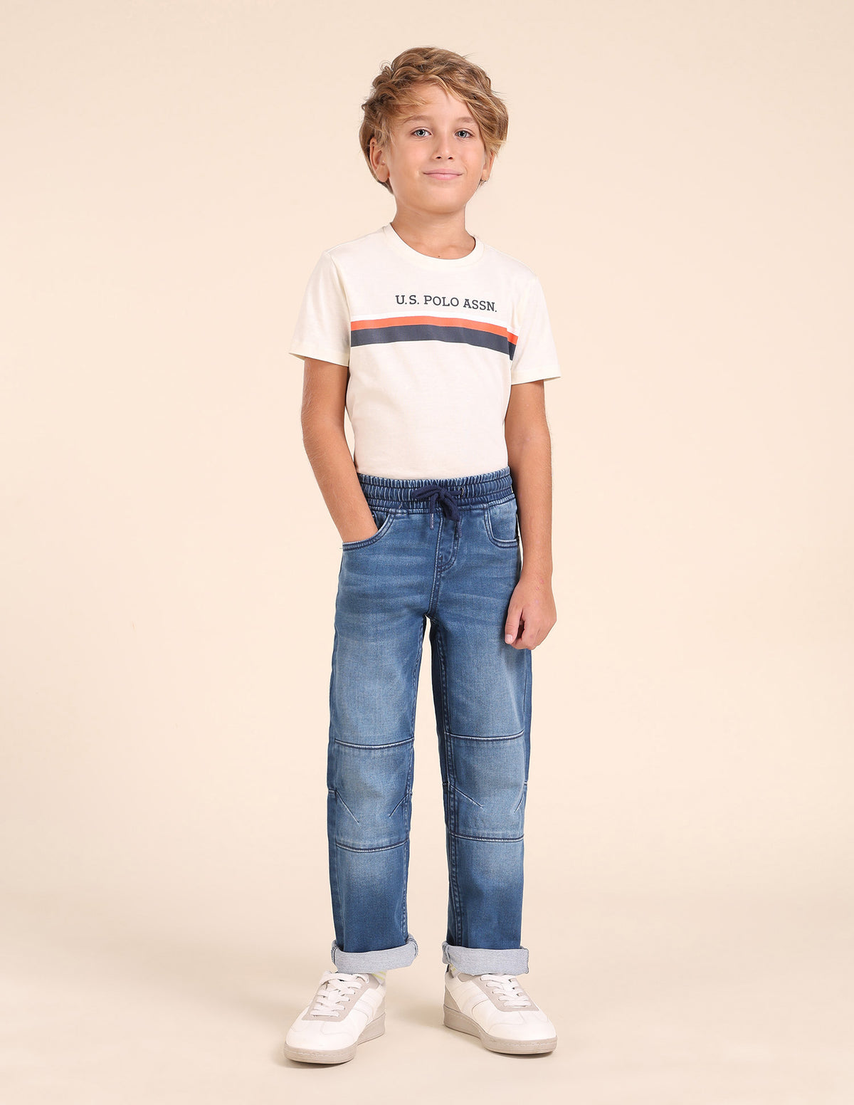 Story: Boys' pull-on jeans with CNS at knee panel, combining style and comfort for casual wear.