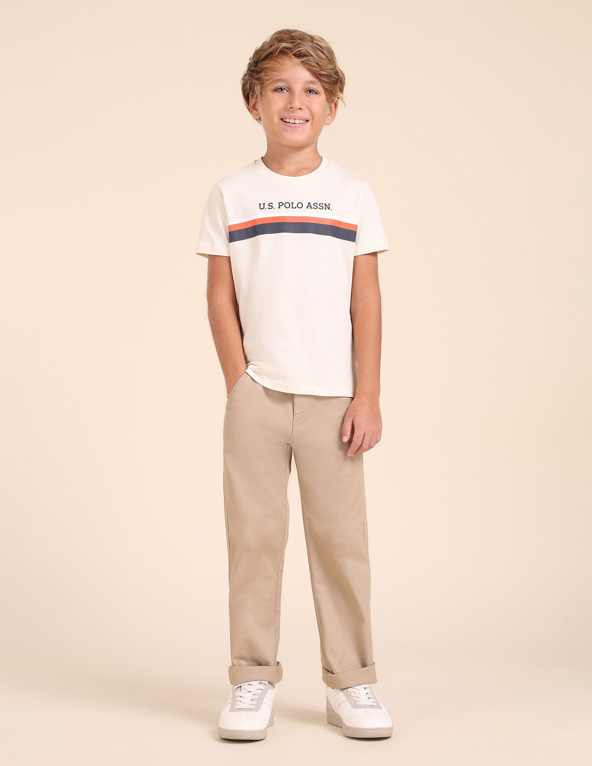 Story: Boys' casual t-shirt with engineered horizontal stripes at front. A stylish and playful design perfect for young fashion enthusiasts.