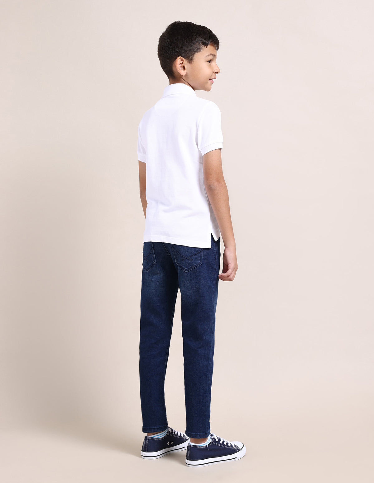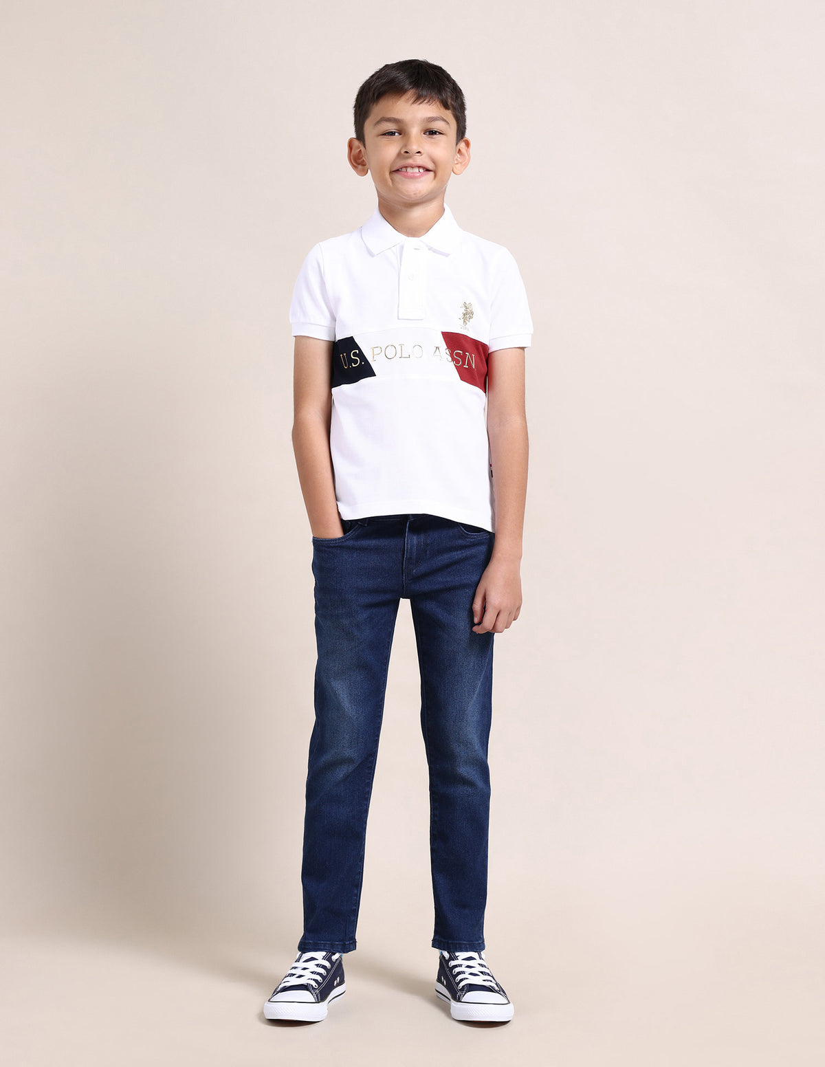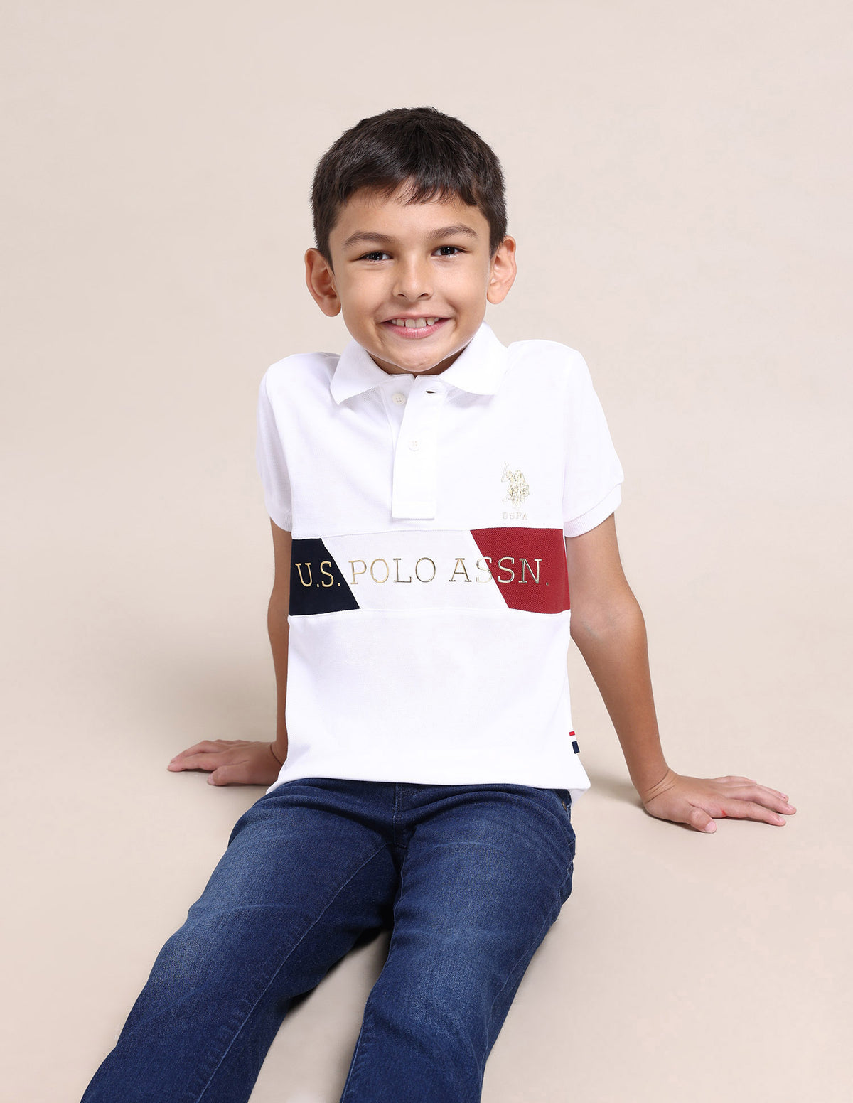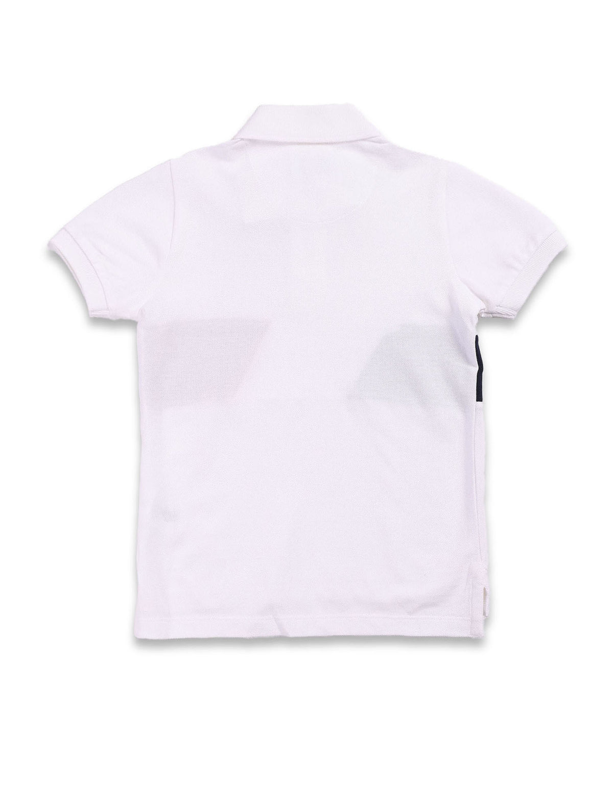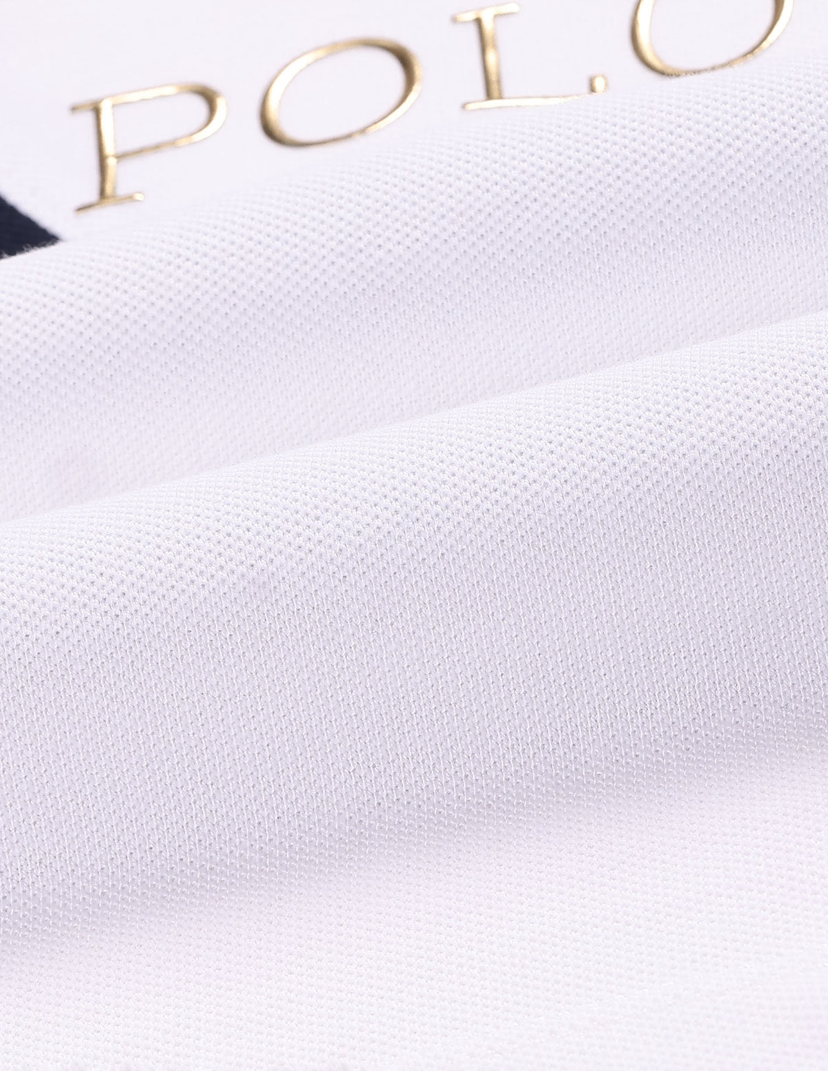 | Polo collar | Embroidered logo at chest | Short button placket | Logo printed pattern | Short sleeves | Ribbed collar and sleeve hems | Uneven vented hem |