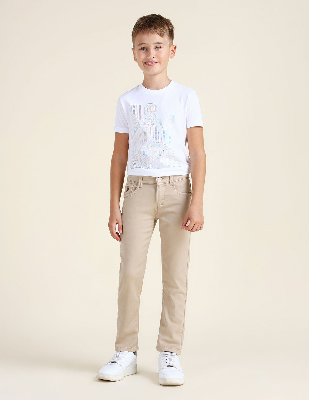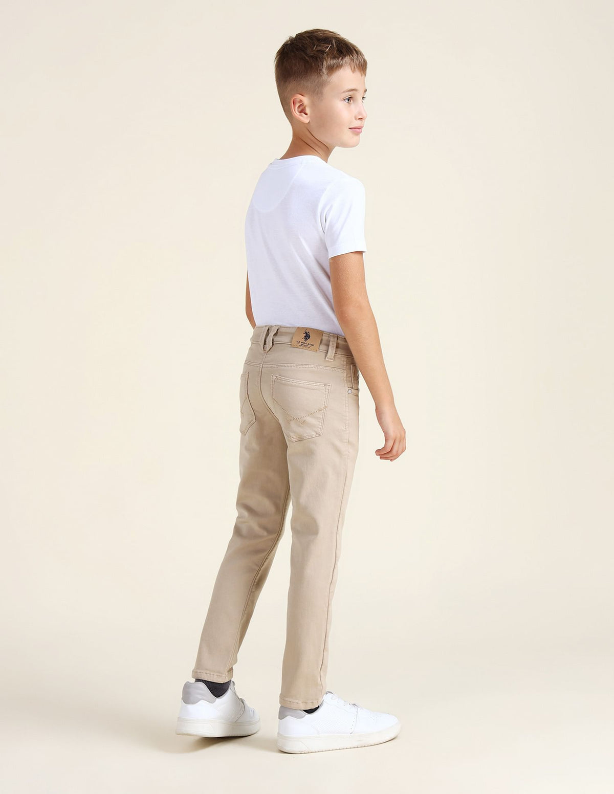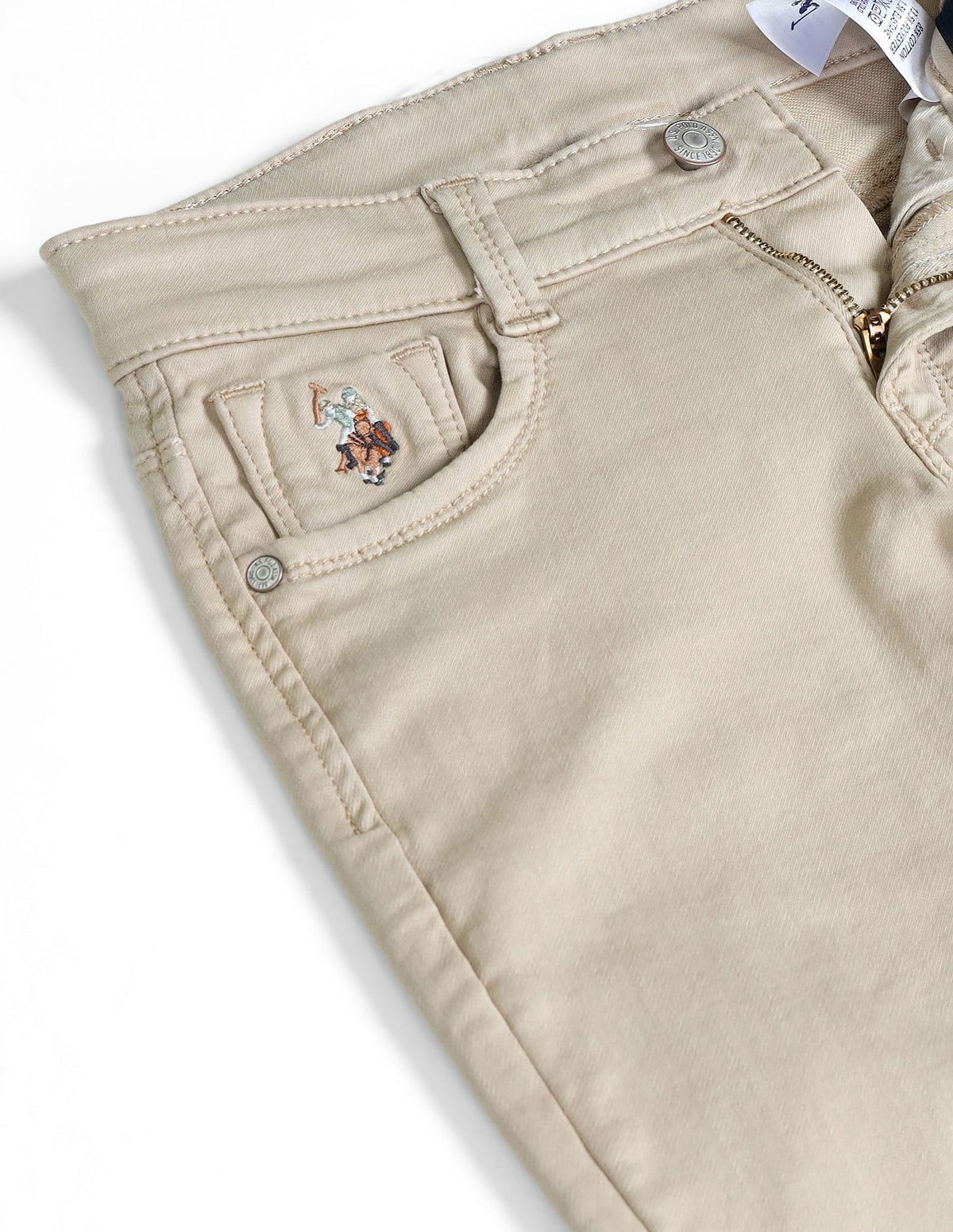 | Mid-rise waist | Button and zip fly closure | Five-pocket styling | Denim weave | Fit: Slim fit |