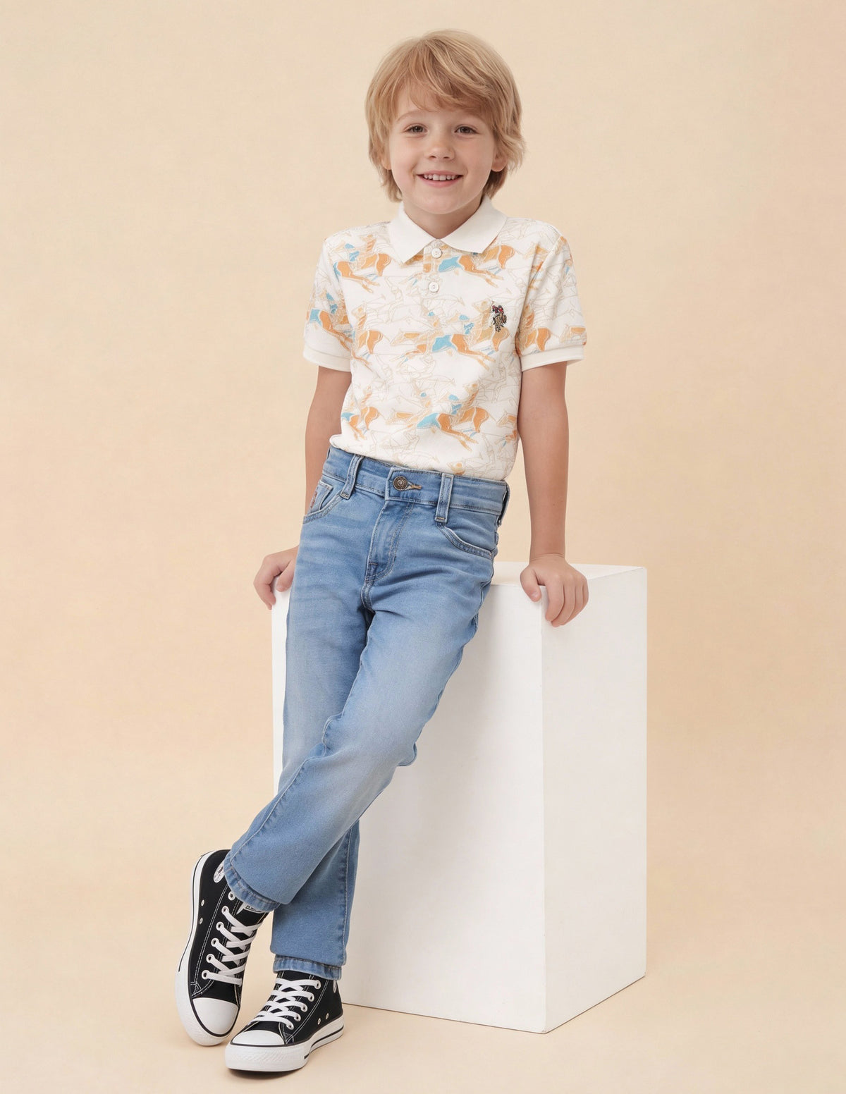 Story: Slim fit jeans crafted from stretchable cotton with whiskered detailing provide boys with sleek, comfortable casual style.