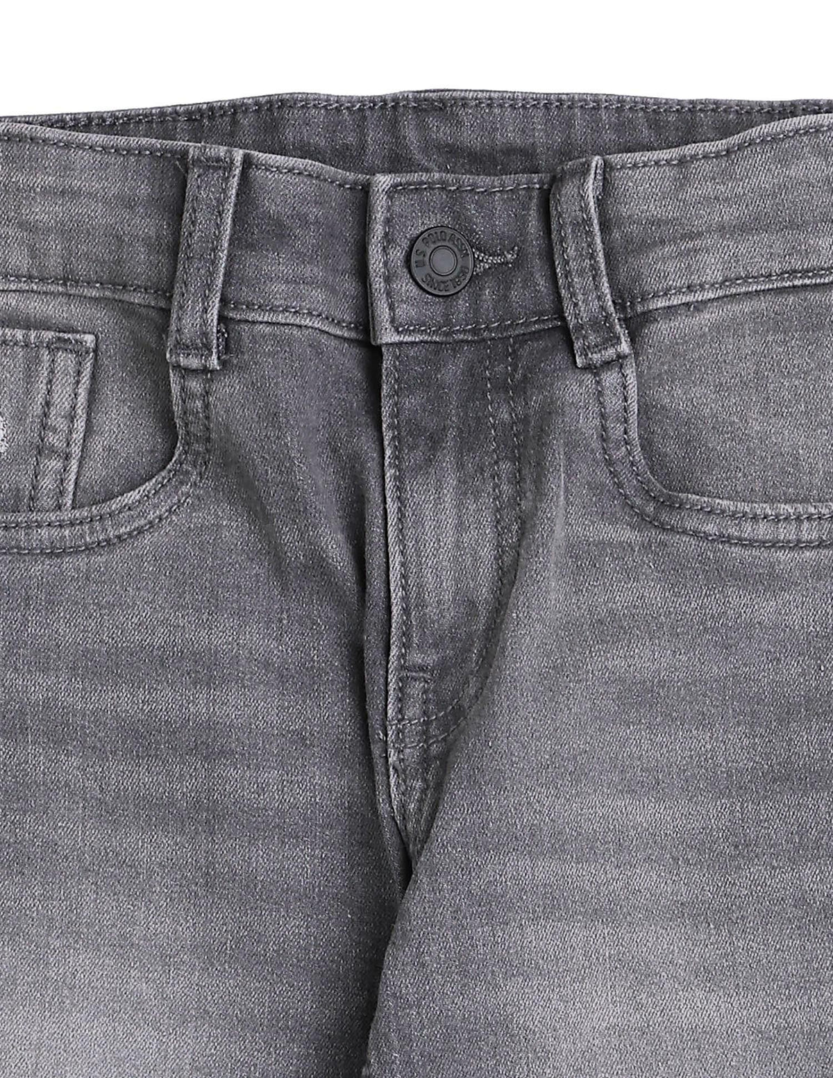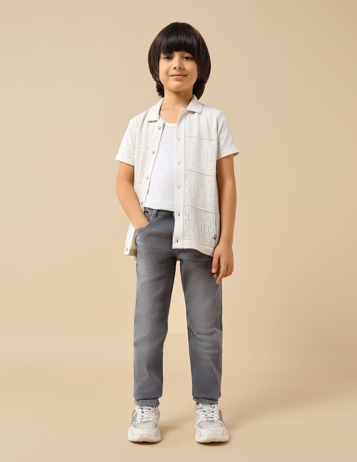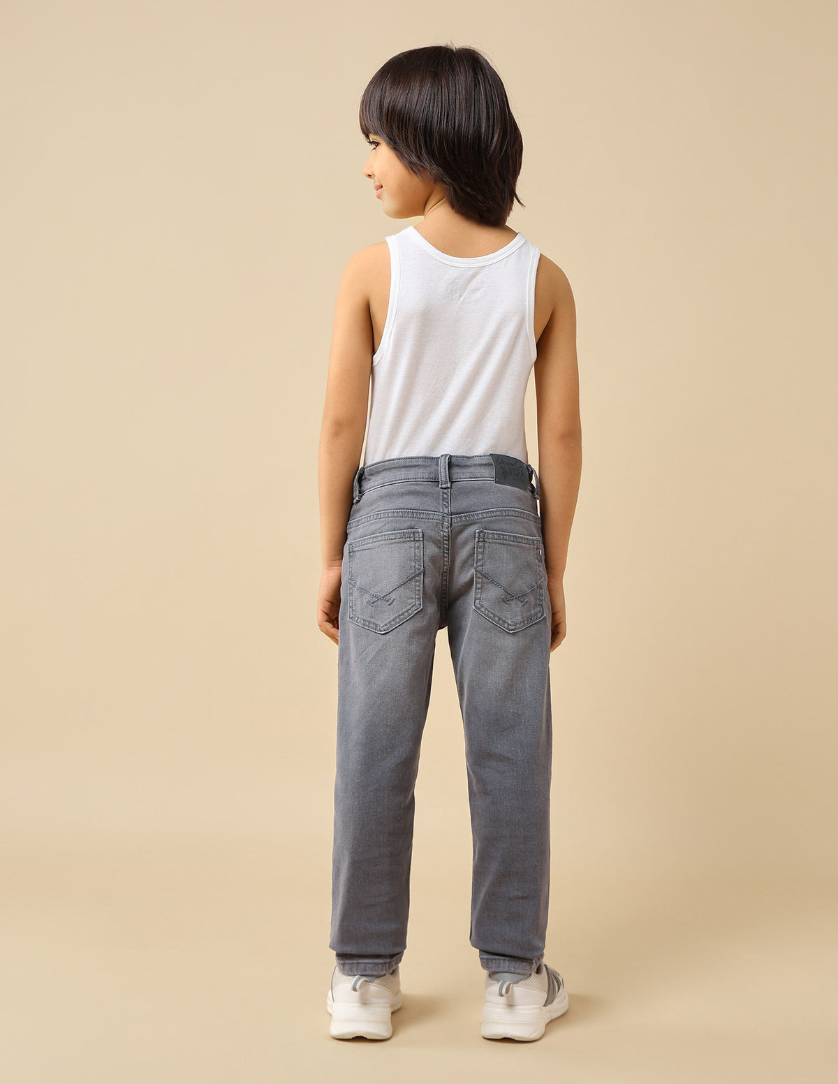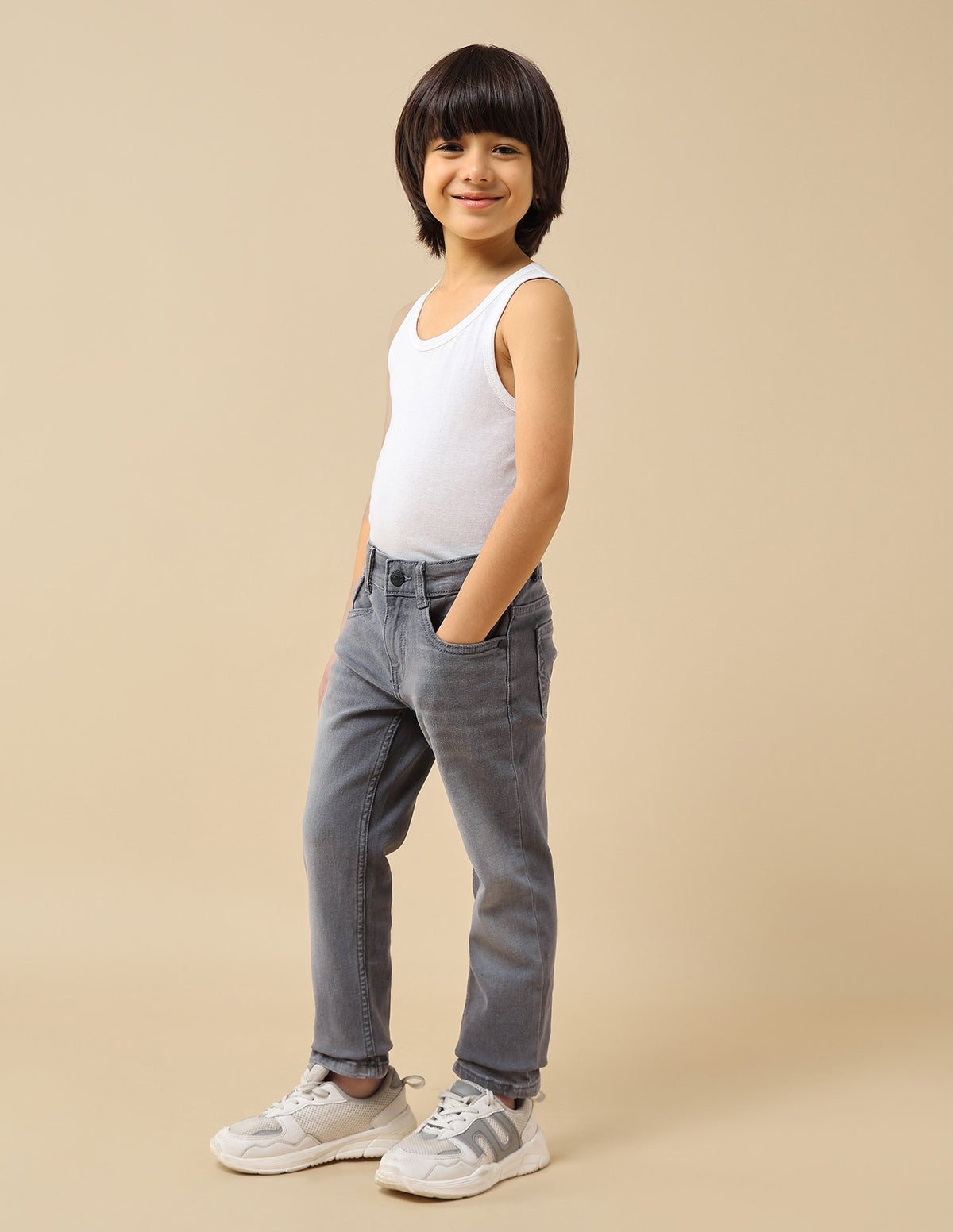 Story: Boys' casual solid jeans. Versatile and comfortable, these denim pants are perfect for everyday wear, easily matching various tops and shoes.