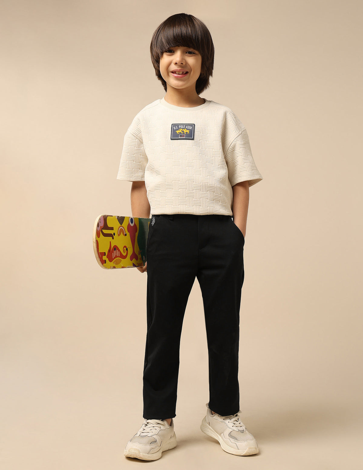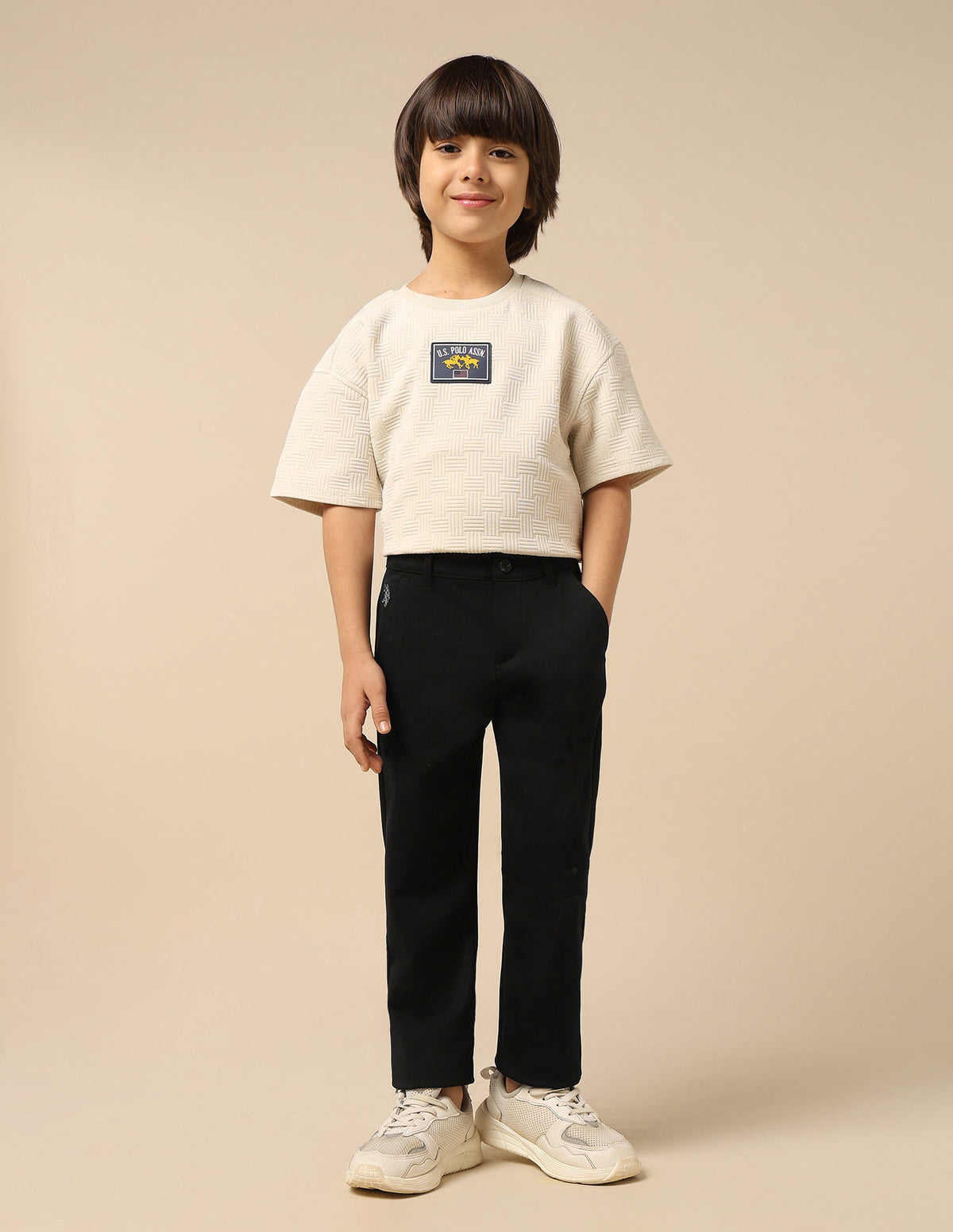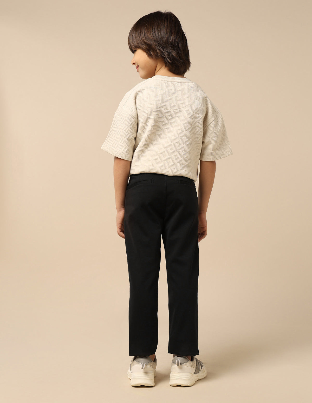 Story: Boys' casual solid trousers, offering versatile and comfortable bottoms for various relaxed occasions and everyday wear.