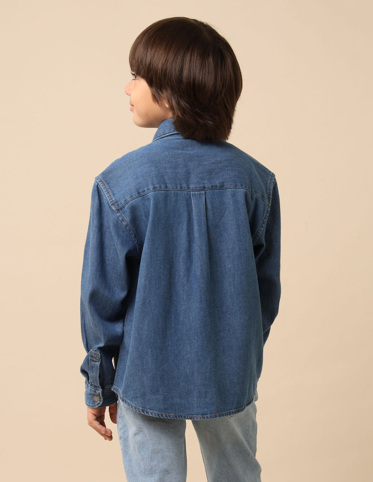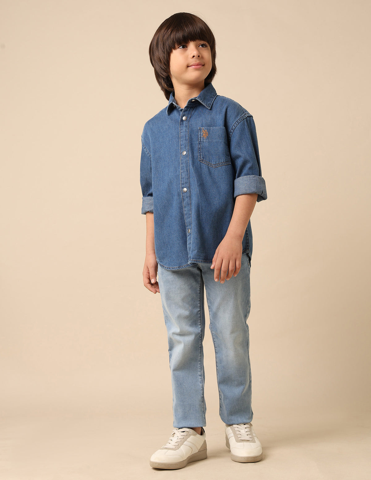 Story: Boys can look sharp in this solid-colored casual shirt, perfect for various informal occasions.