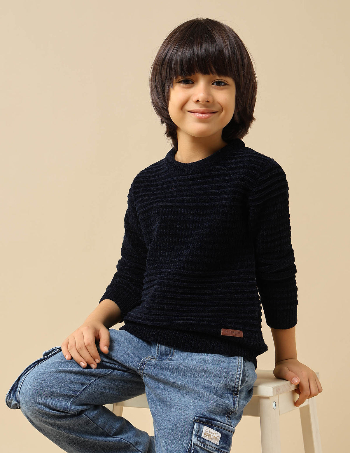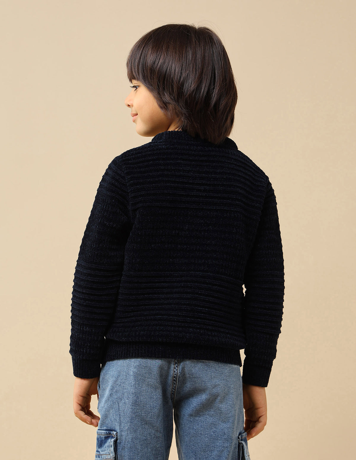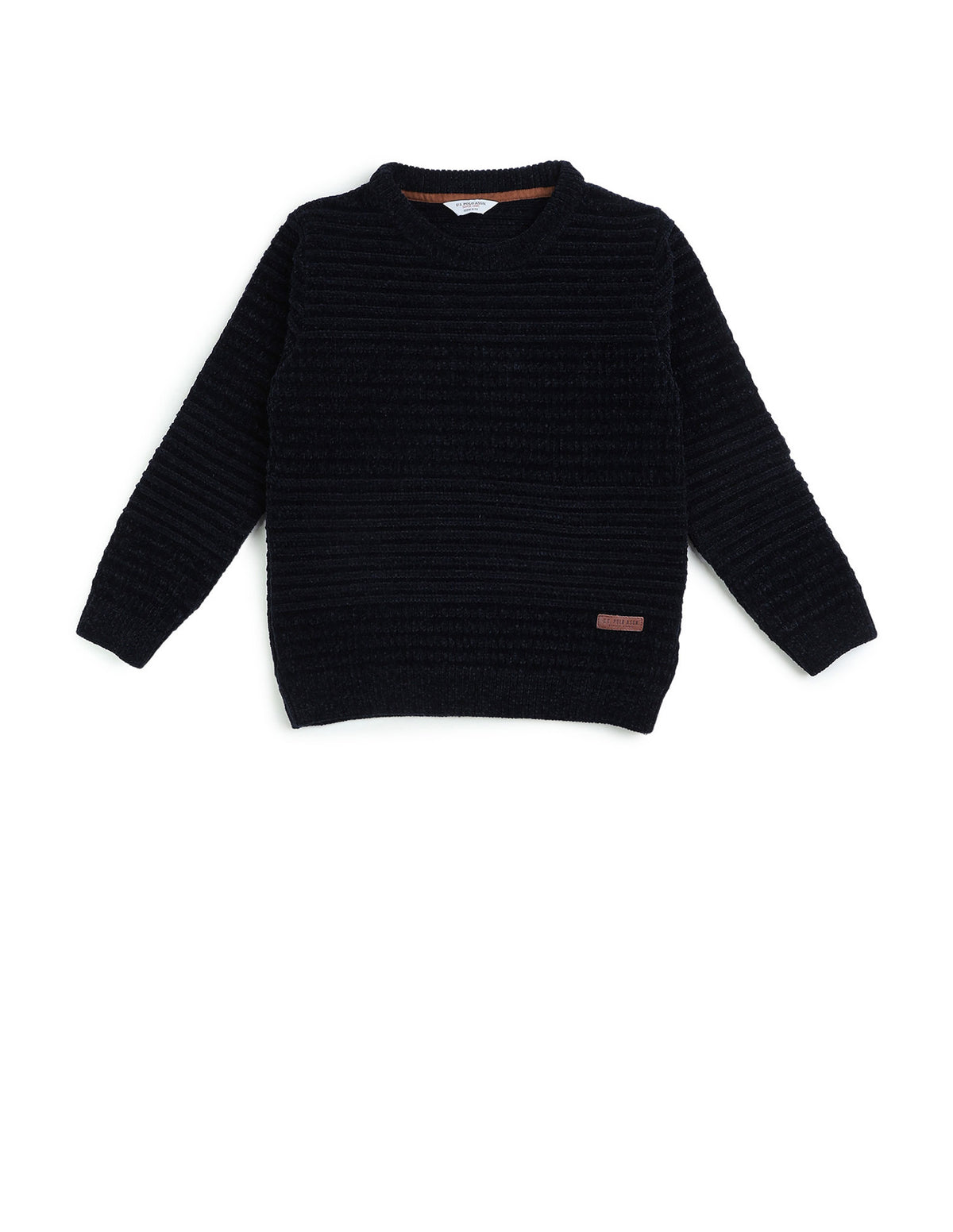 Story: Boys' textured sweater from the Mini Me collection, perfect for casual occasions and cozy comfort.