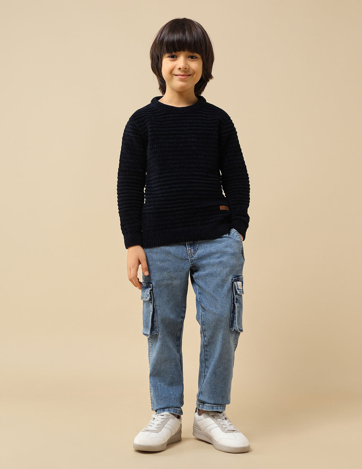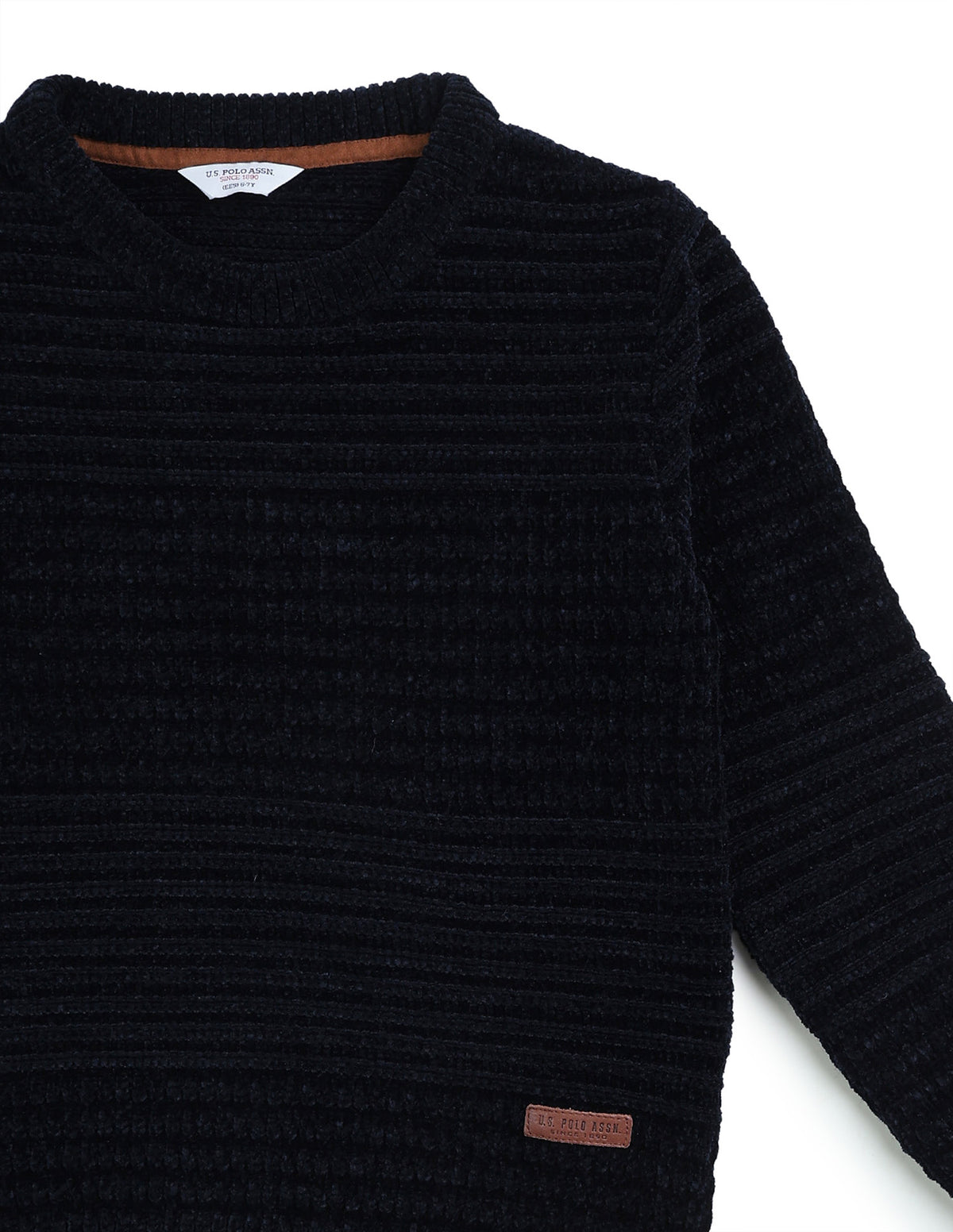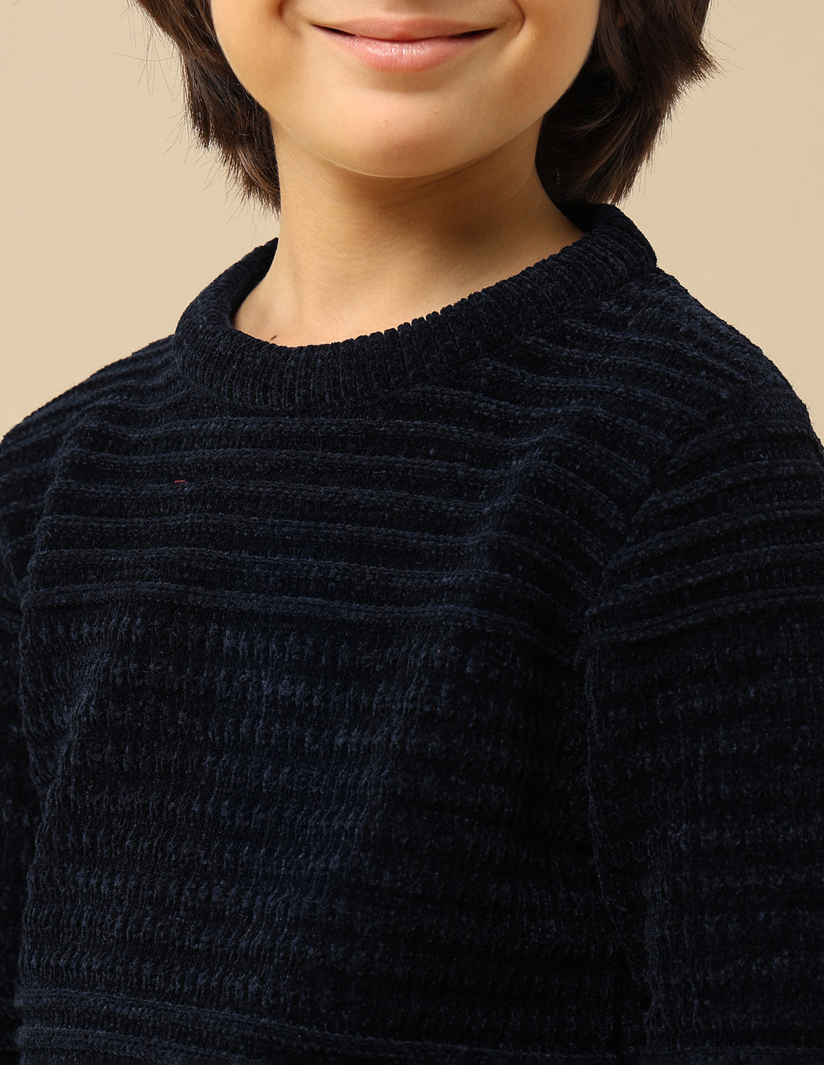 Story: Boys' textured sweater from the Mini Me collection, perfect for casual occasions and cozy comfort.