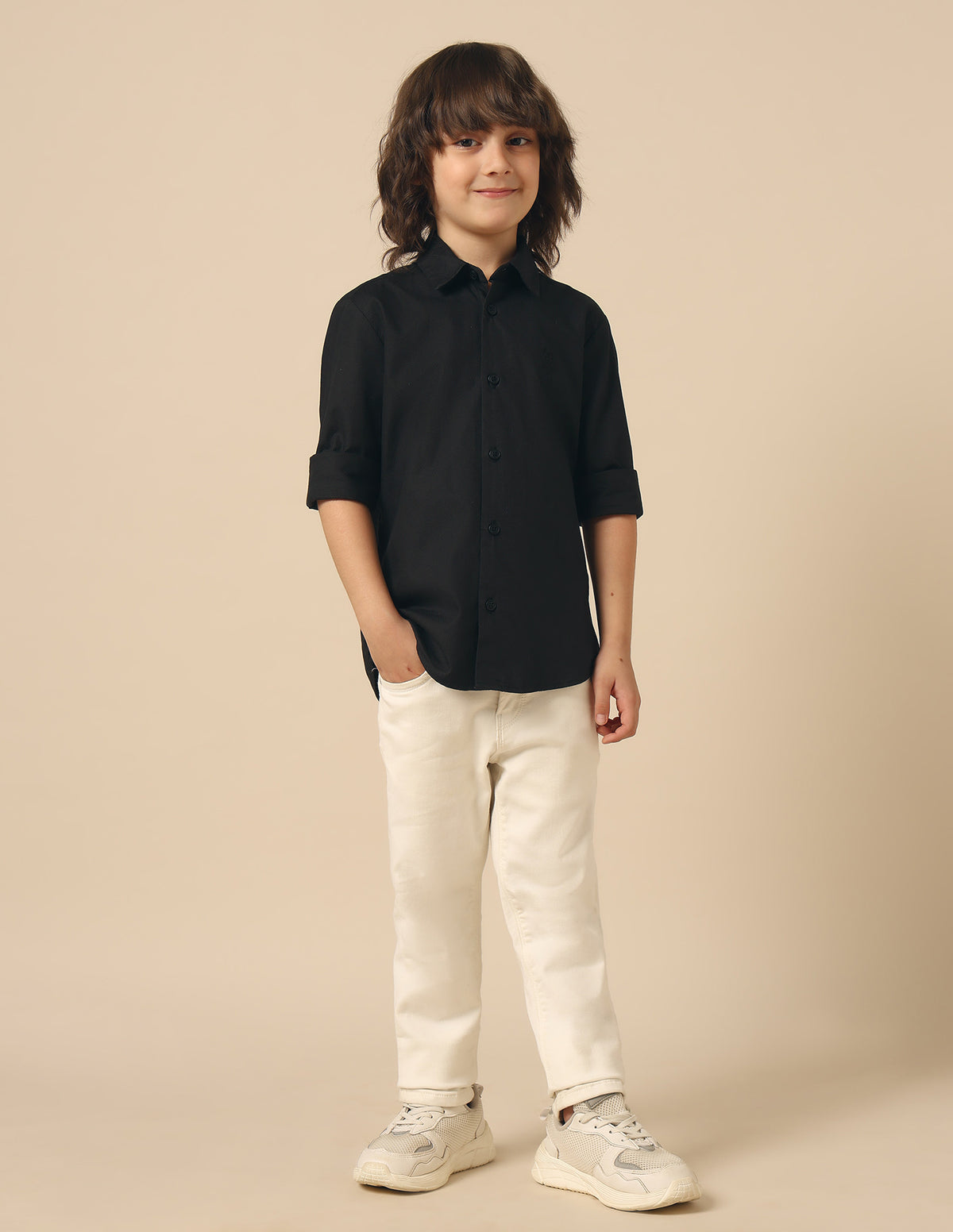 - Long sleeves with rounded cuffs