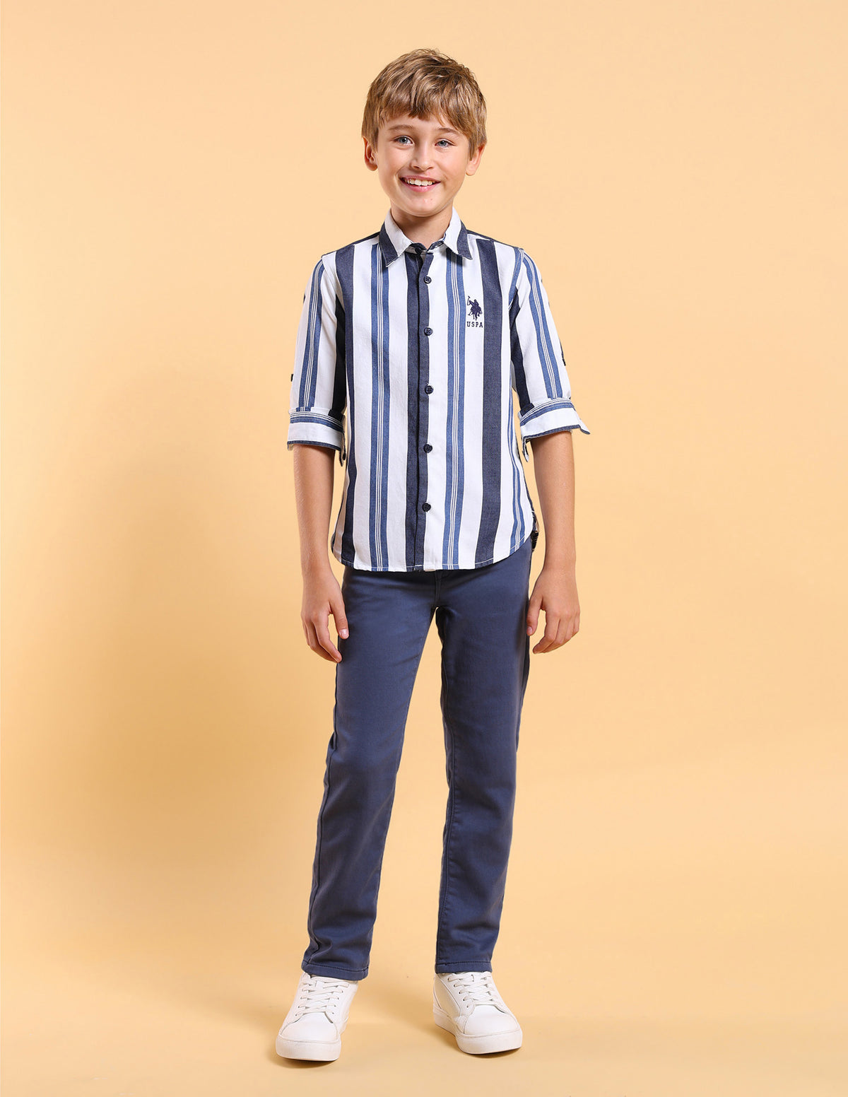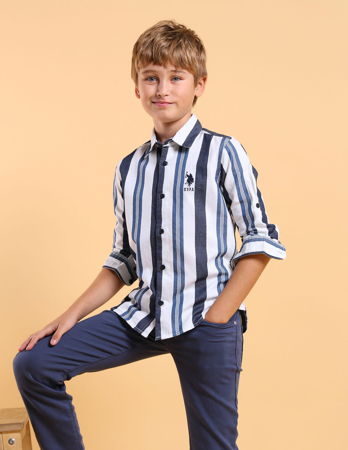 Boys Twill Vertical Striped Shirt