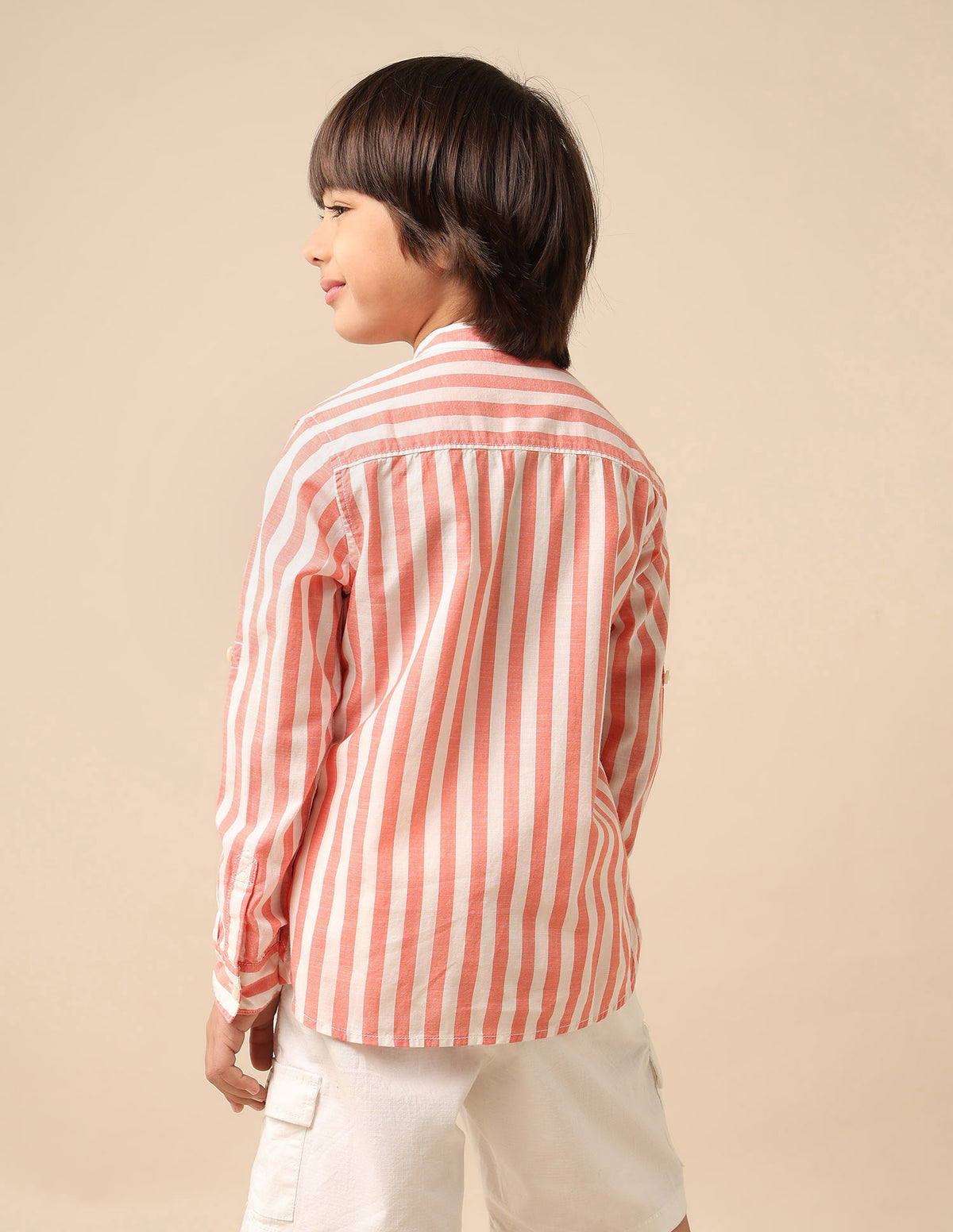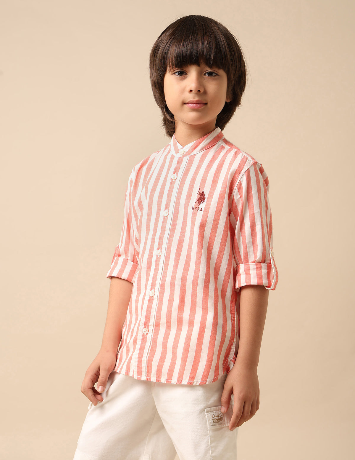 Story: Boys' casual vertical striped shirt, adding a stylish touch to everyday outfits.