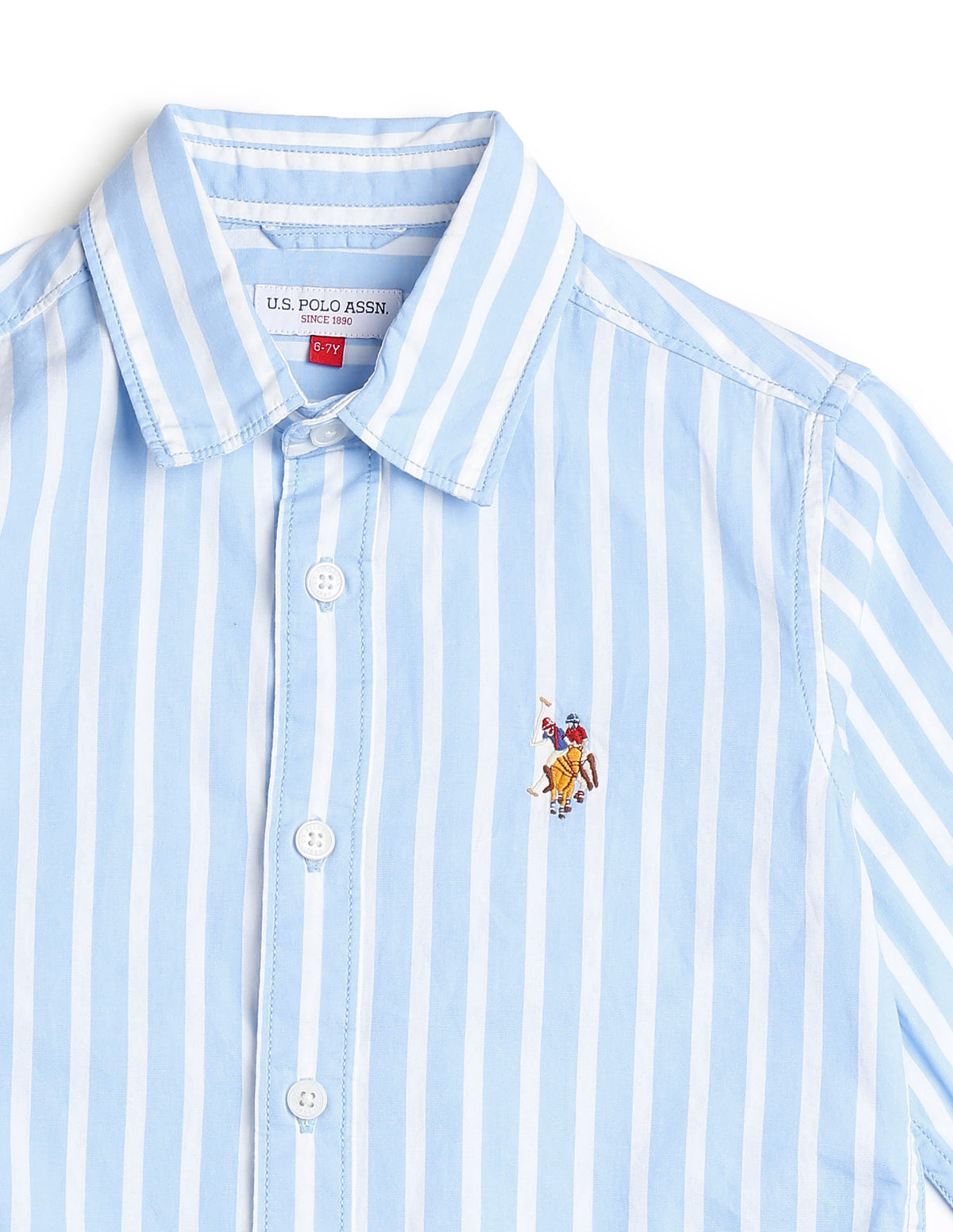 Story: Boys' casual shirt with vertical stripes, providing a smart yet relaxed look for various informal occasions.