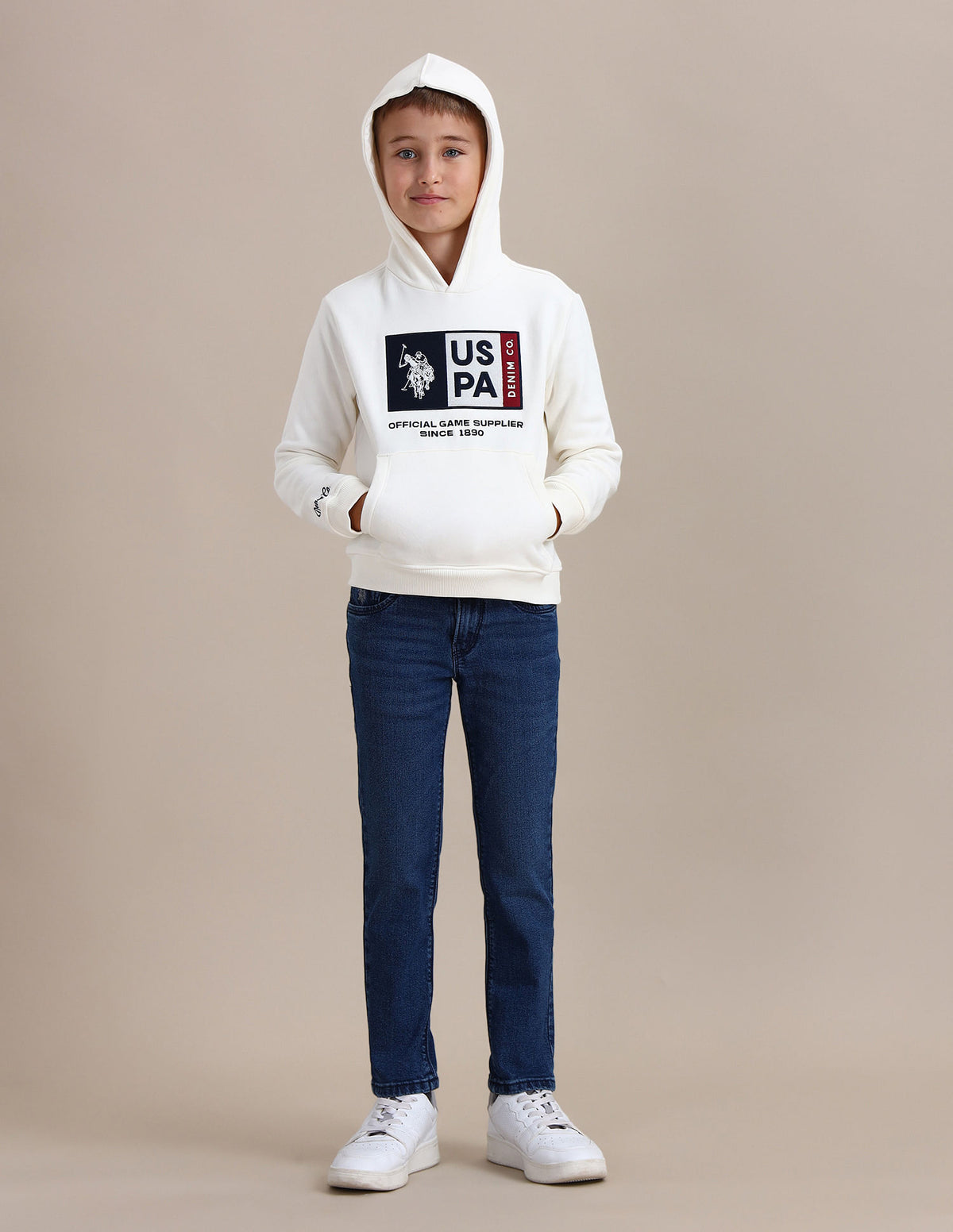 | Hooded | Long sleeves | Ribbed sleeve hems and hemline | Brand printed pattern | Regular fit |