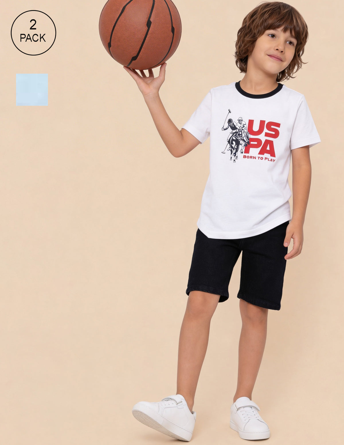 Brand Printed Regular Fit T-Shirt - Pack Of 2
