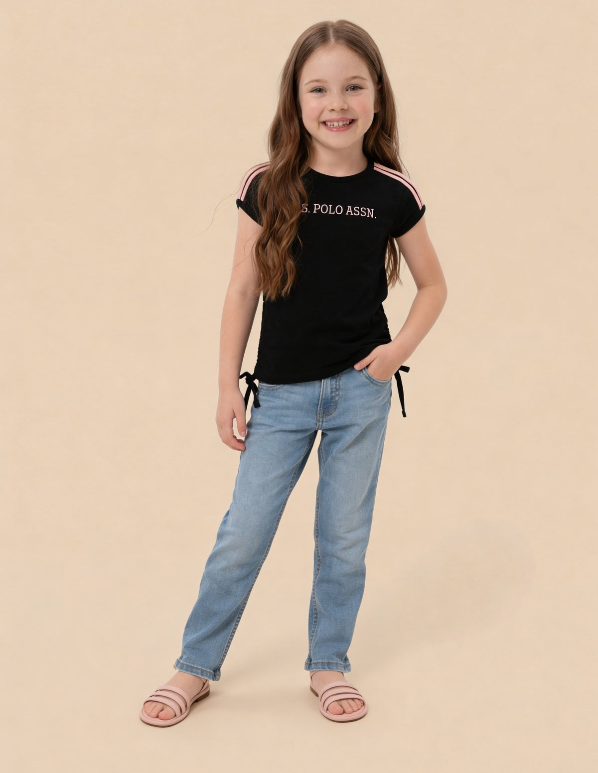 Story: This girls' top features a playful logo pattern, combining casual comfort with youthful energy for everyday adventures and relaxed outings.