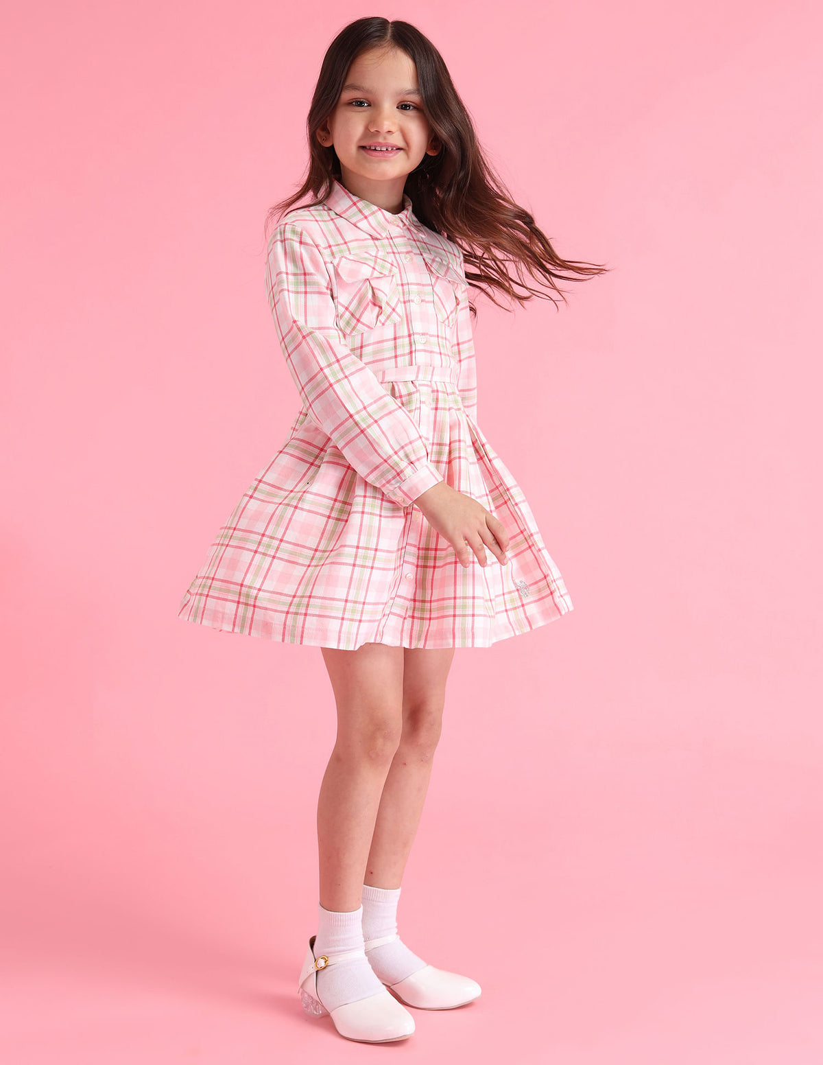 Girls Checked A-Line Dress