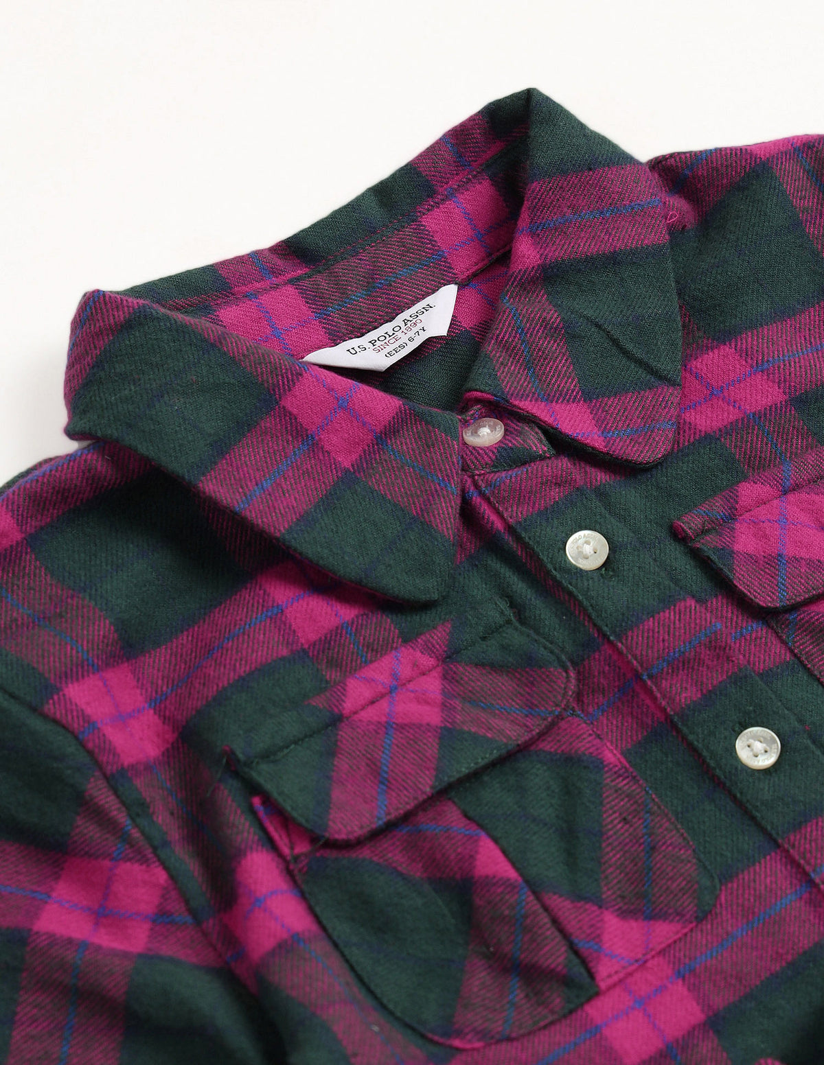 Story: Keep her looking adorable in this girls' checked dress. The spread collar adds a touch of sophistication, while the casual design makes it perfect for playdates or family outings.
