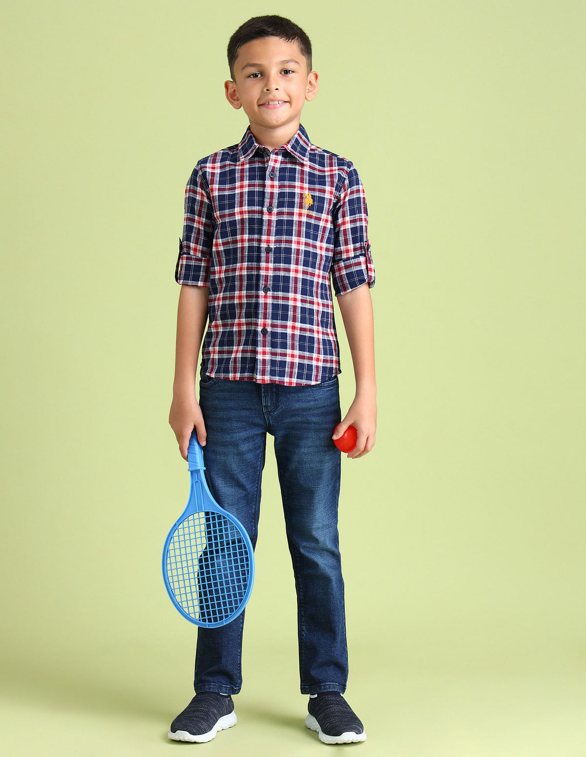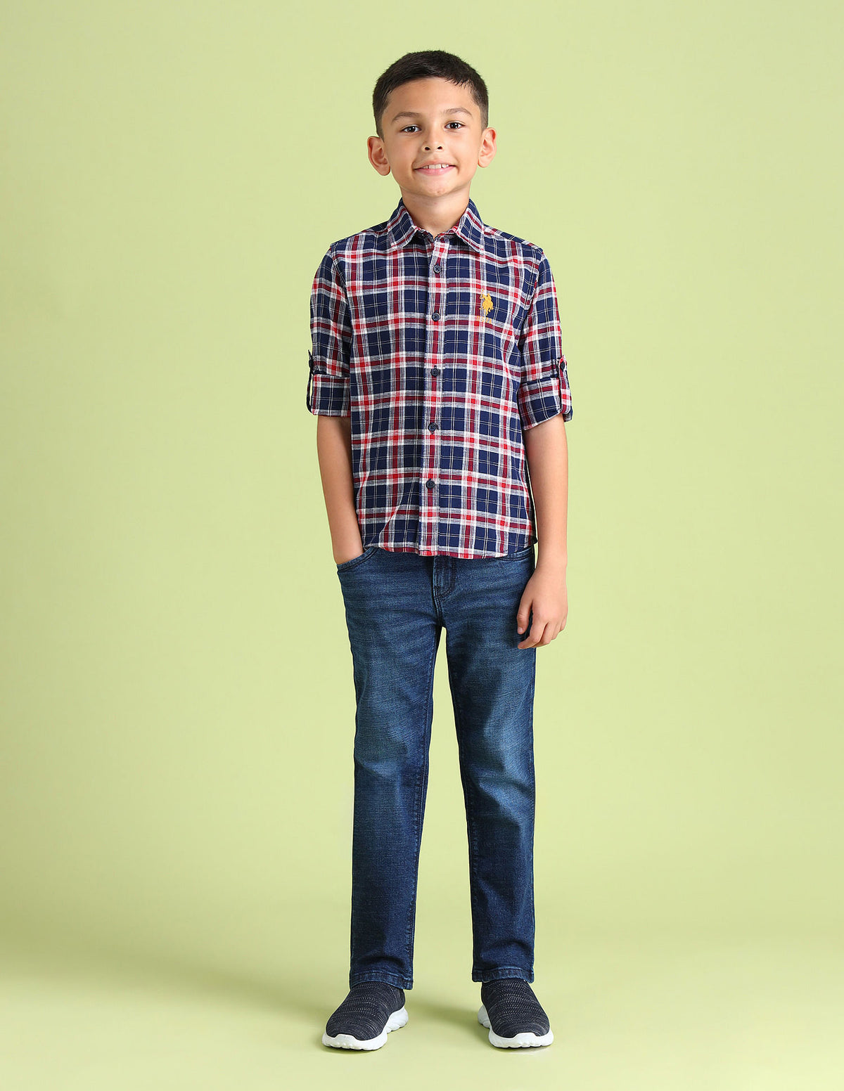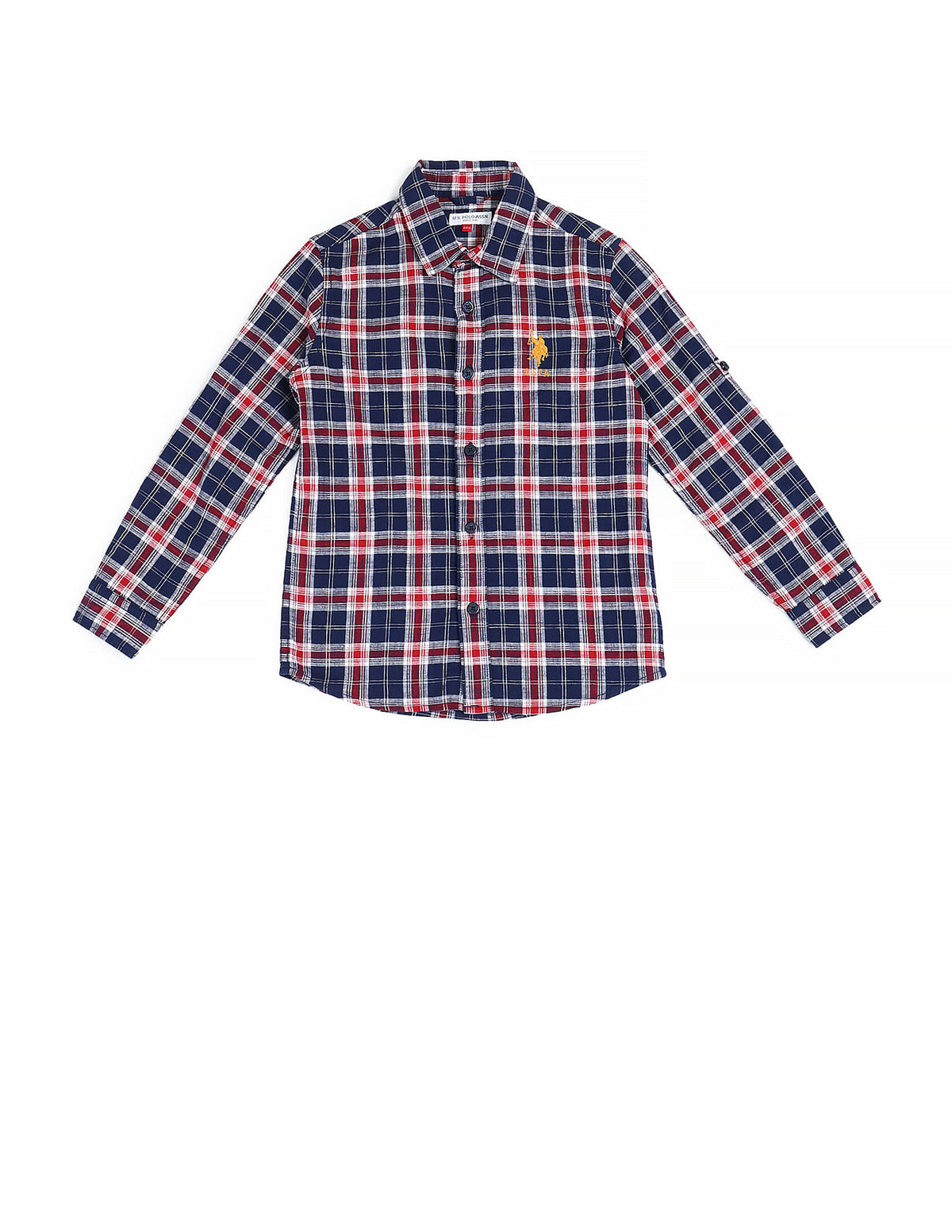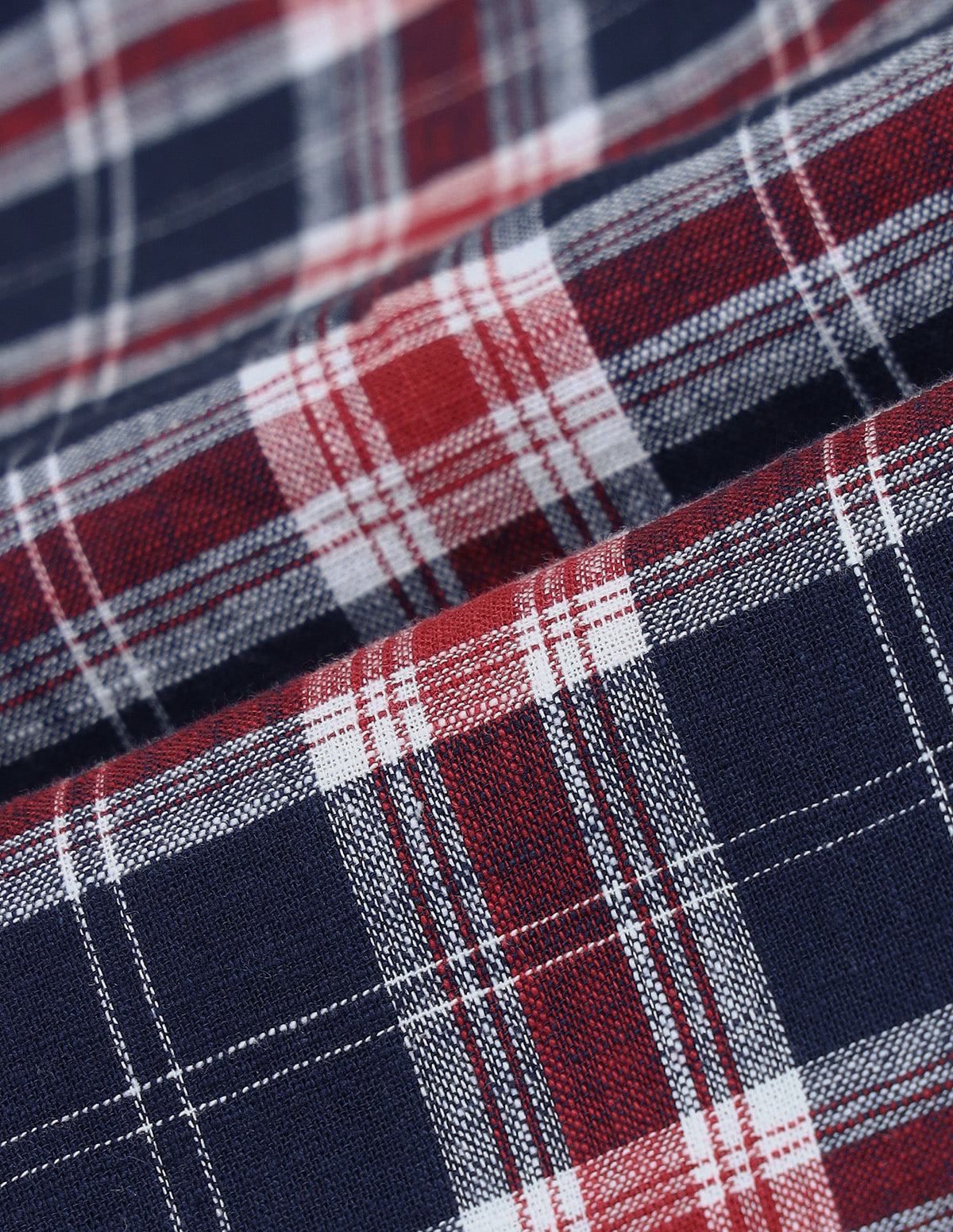| Spread collar | Logo at chest | Full button placket | Long sleeves with rounded cuffs | Curved hemline | Tartan checked pattern | Dobby weave | Regular fit |