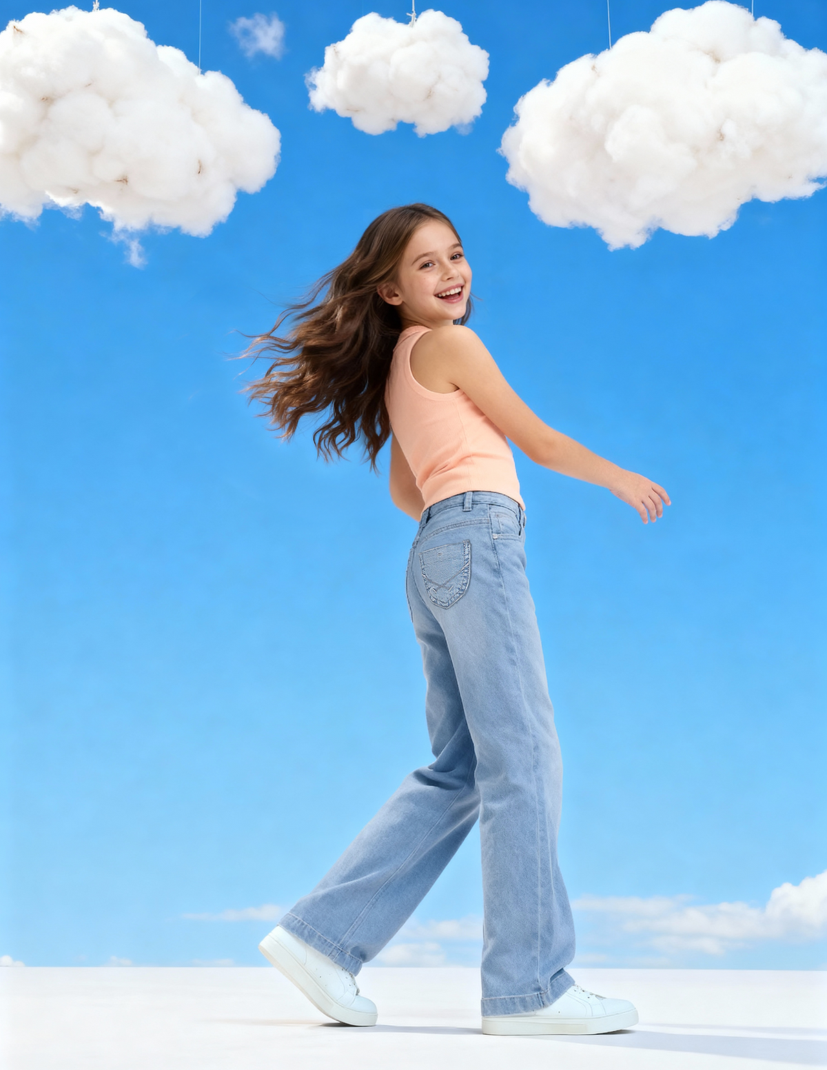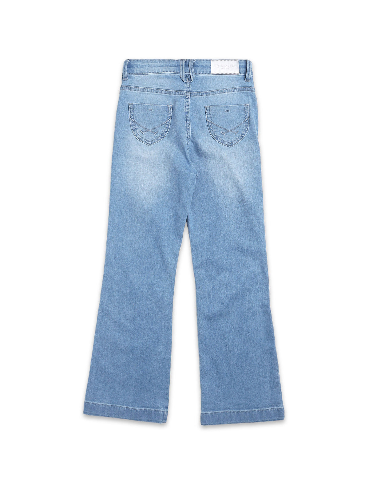 Story: Featuring a bootcut fit and stone-wash treatment, these girls' stretchable cotton jeans combine classic denim styling with comfortable, flexible everyday movement.