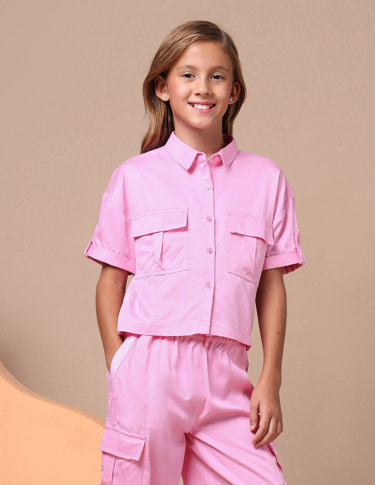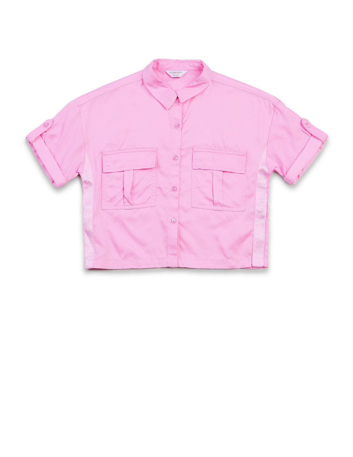 | Spread collar | Two flap pockets at chest | Full button closure | Short sleeves with rolled-up hems | Brand taping on sides | Straight hemline | Solid pattern | Regular weave | Regular fit |