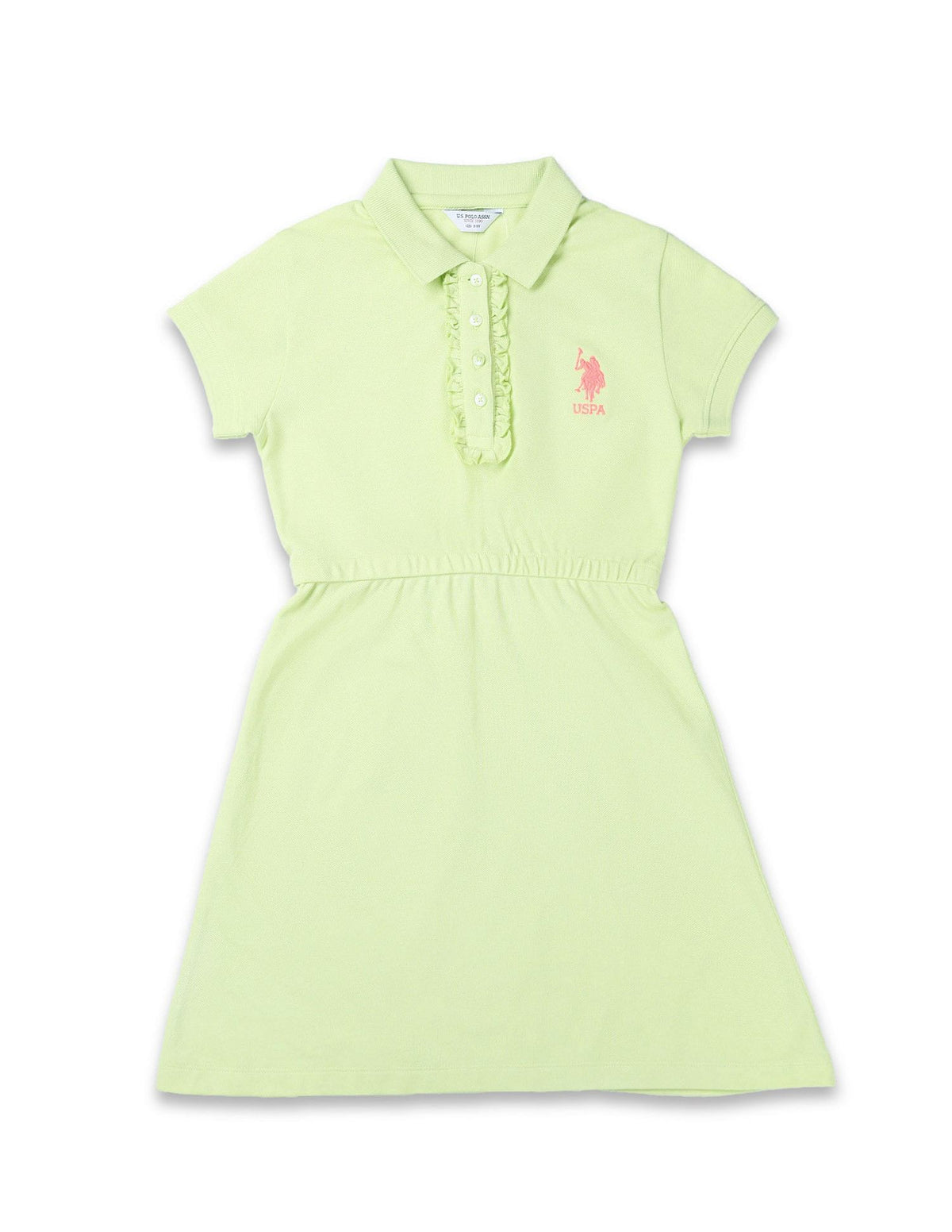 | Polo collar | Logo at chest | Short button placket closure with ruffles | Short sleeves | Solid pattern | Regular fit |