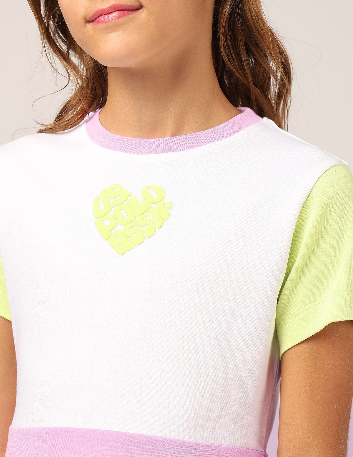| Round neck | Logo at chest | Short sleeves | Colorblocked pattern | Regular fit |