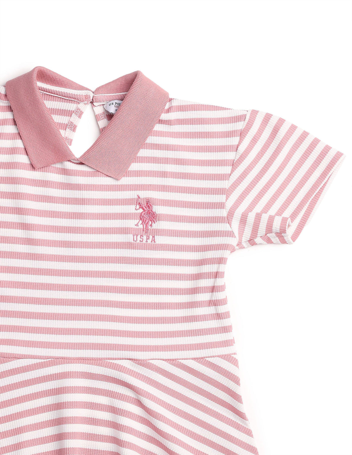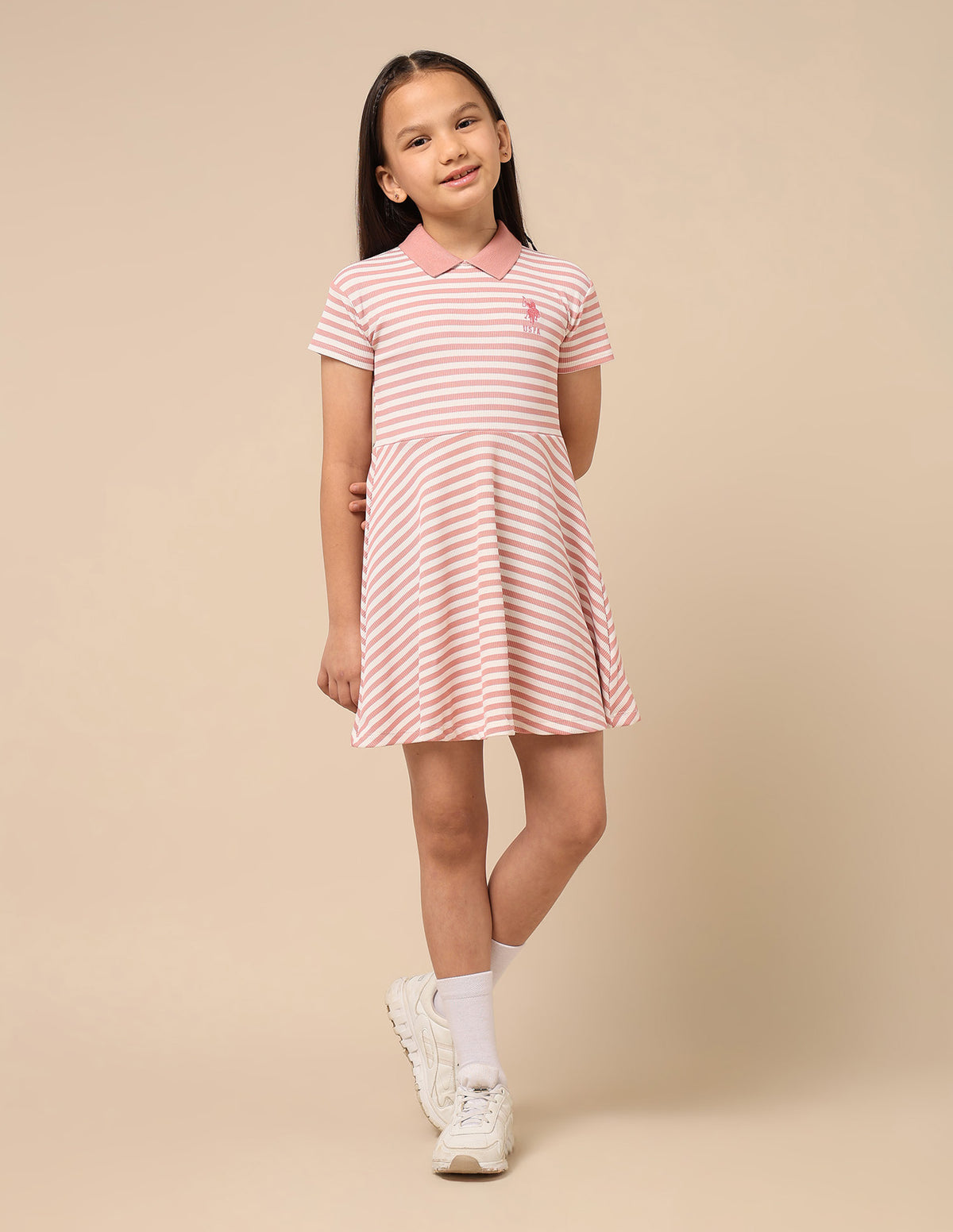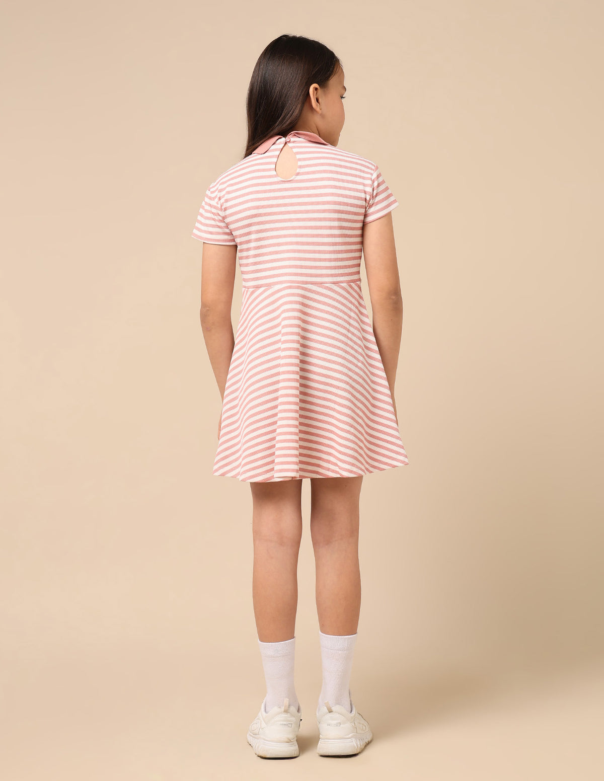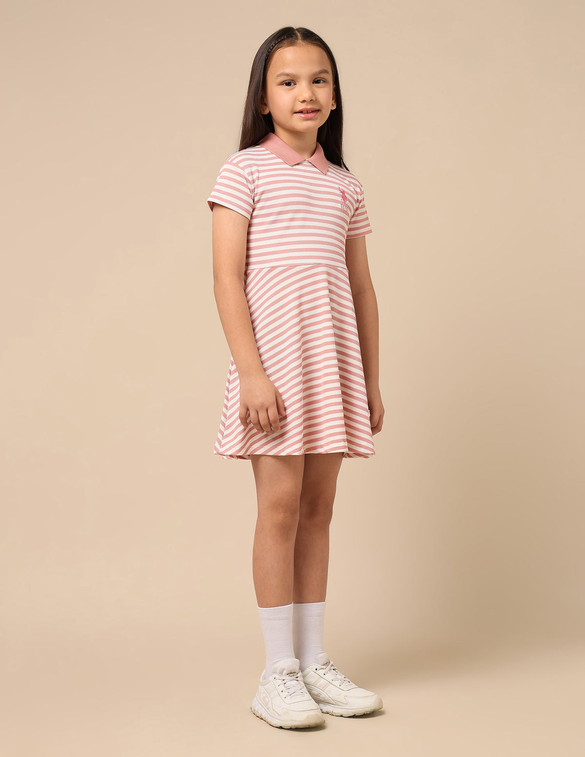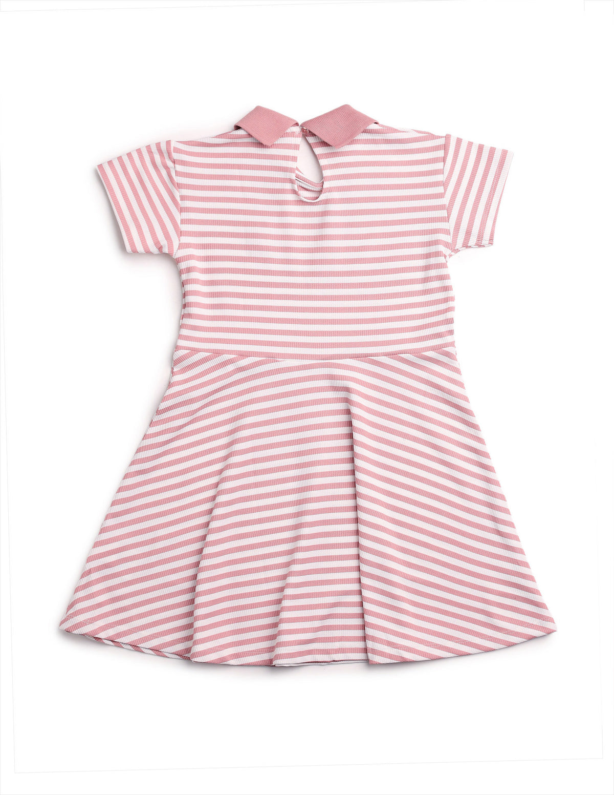 Story: This girls' horizontal-striped dress combines playful pattern with easy-going comfort, creating a fresh and charming choice for casual everyday occasions.
