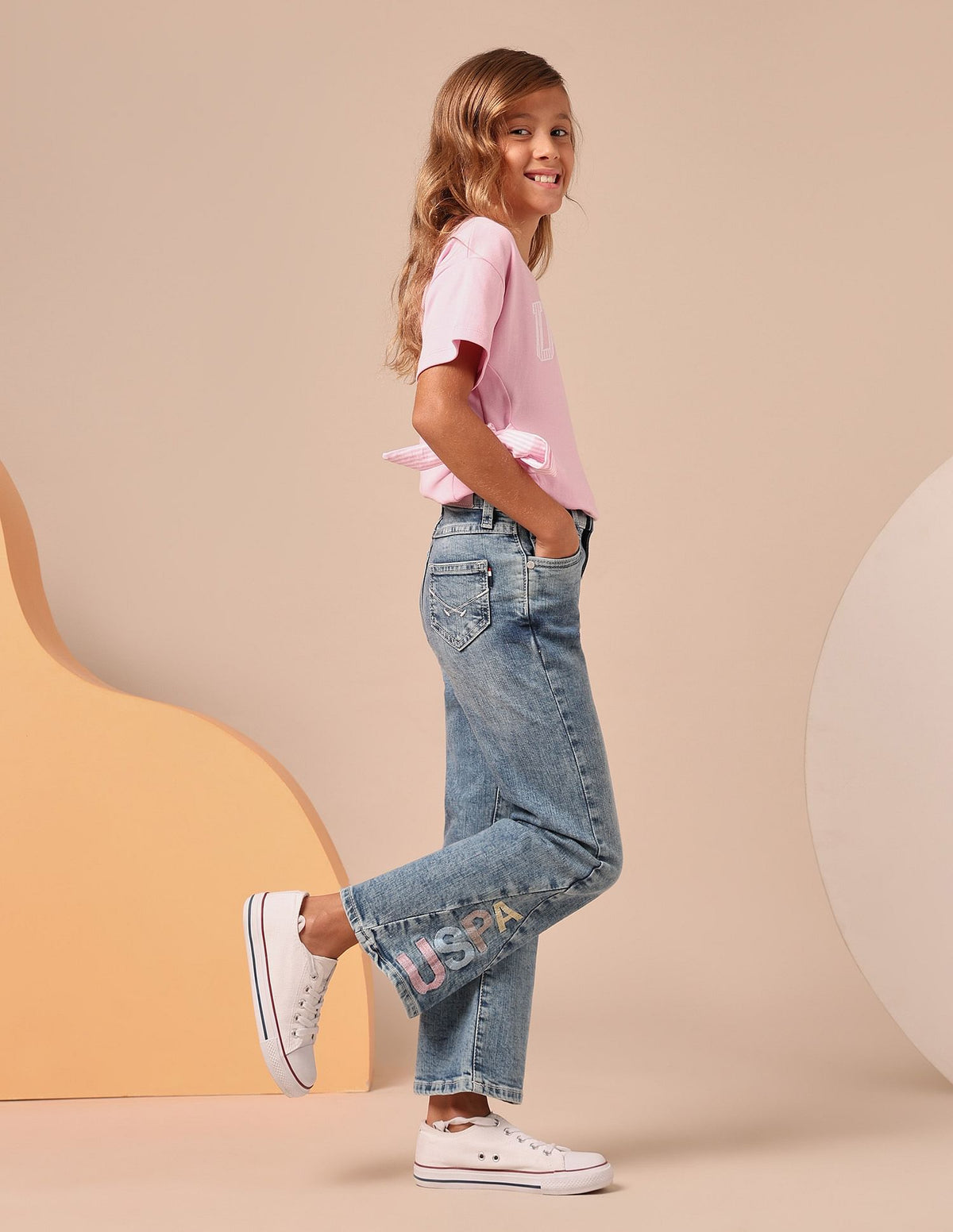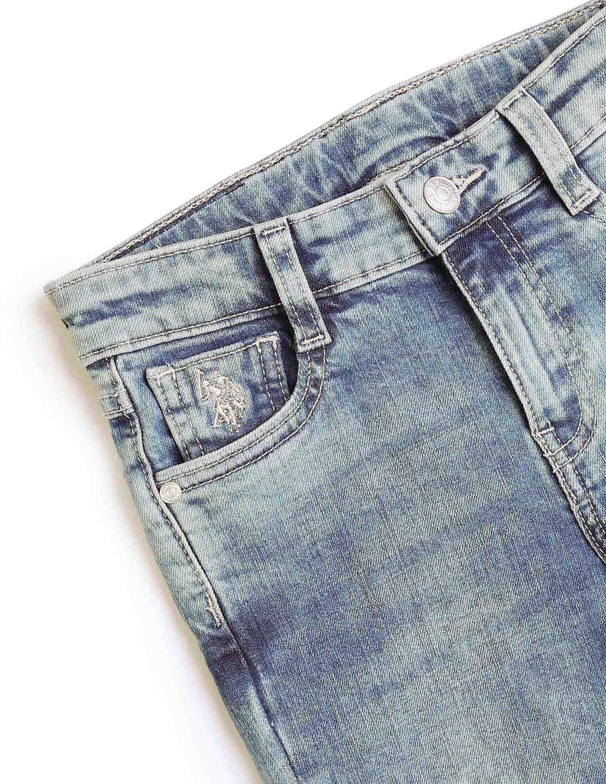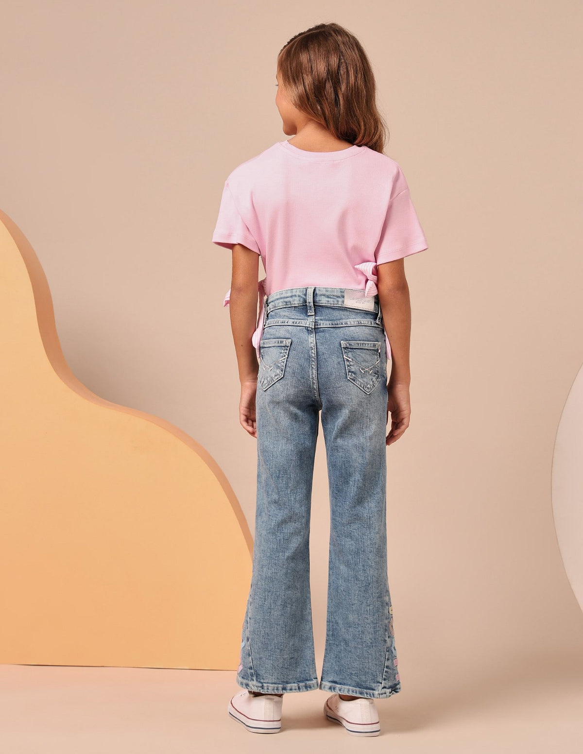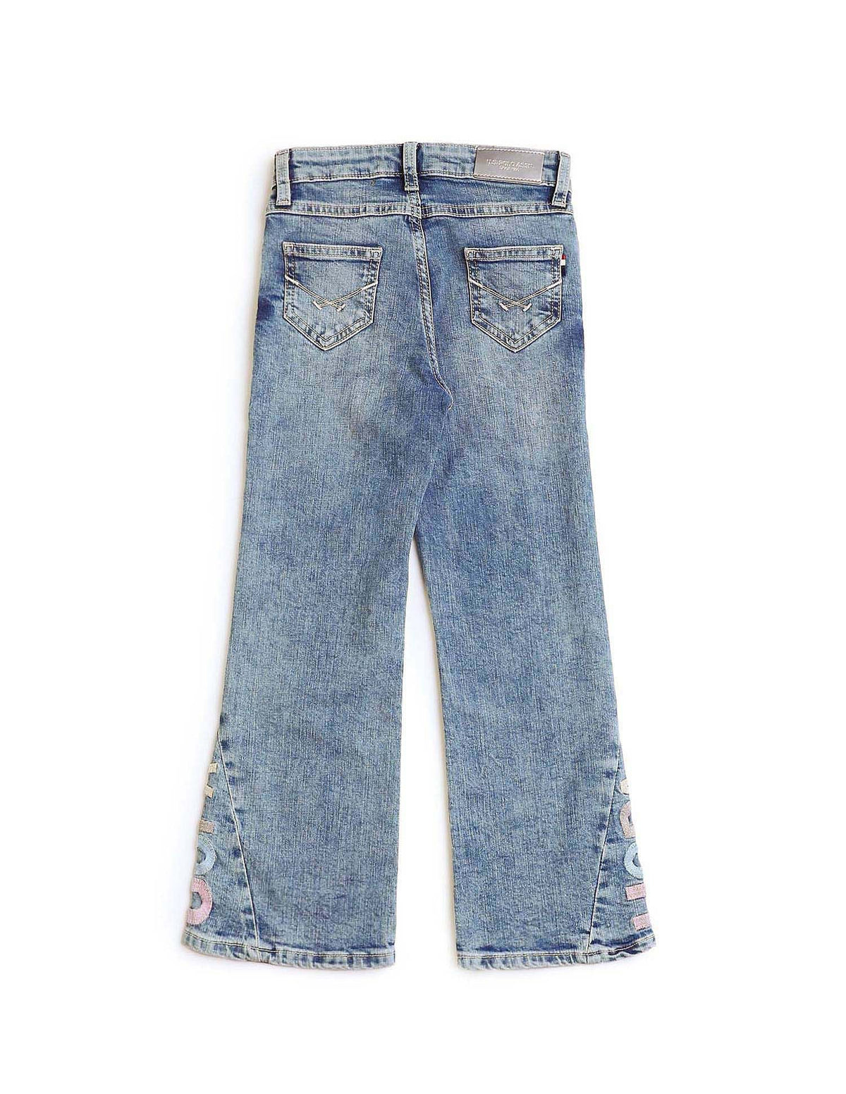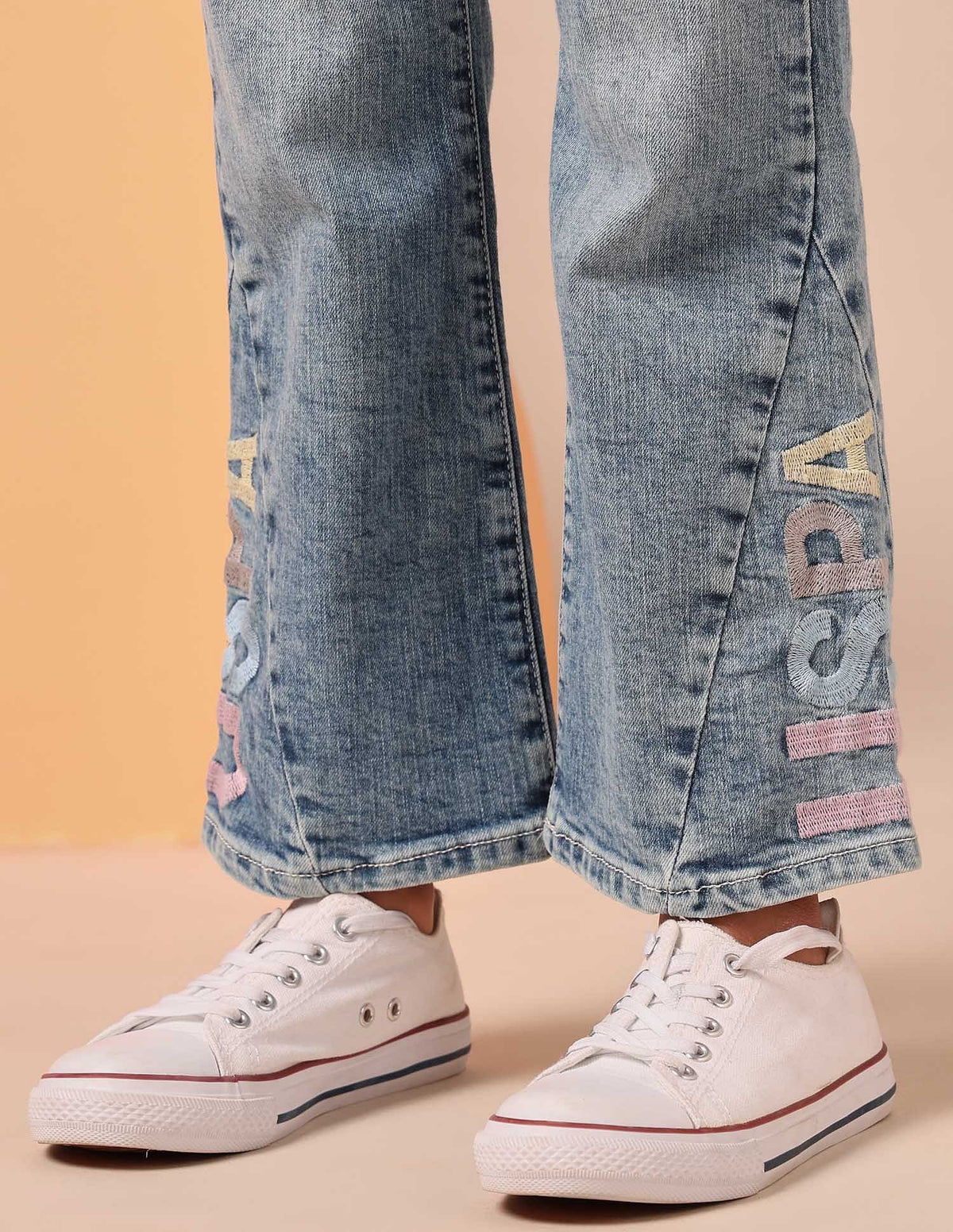 | Mid-rise waist | Button and zip fly closure | Five pockets | Stonewash | Denim weave | Bootcut |