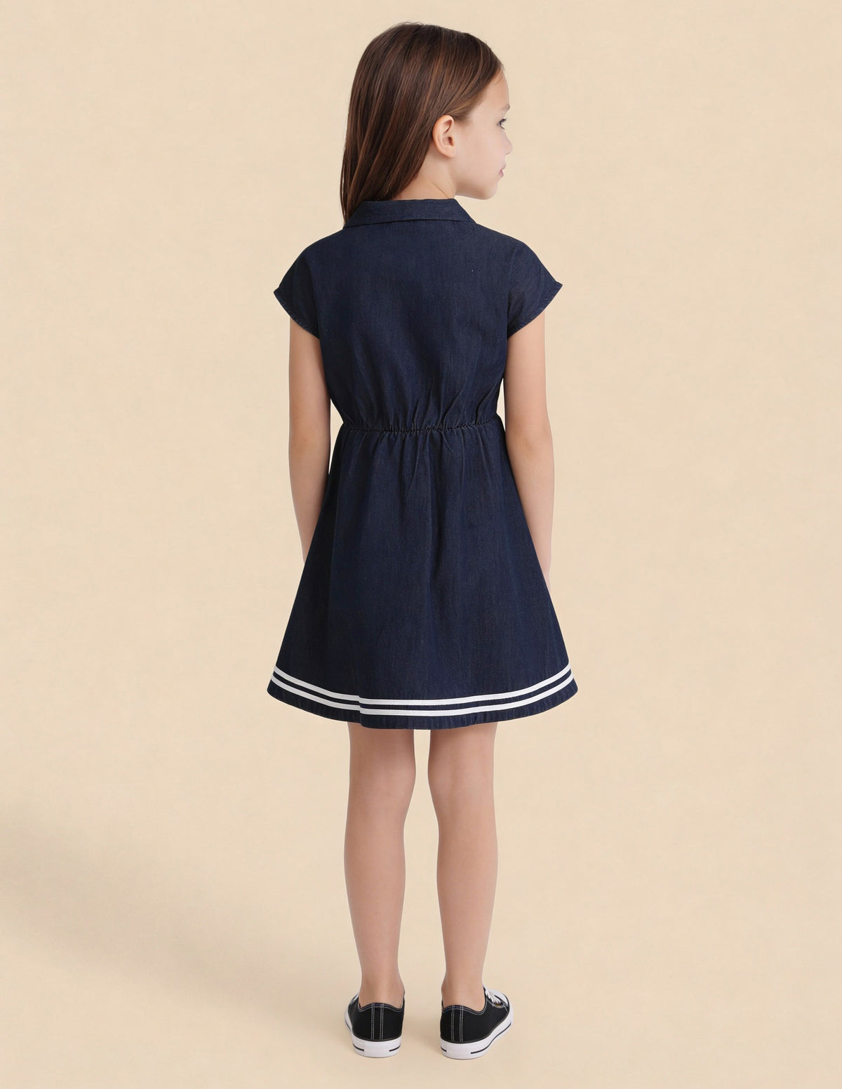 Story: This girls' solid dress delivers timeless simplicity and comfortable movement, perfect for casual outings with graceful, everyday charm.