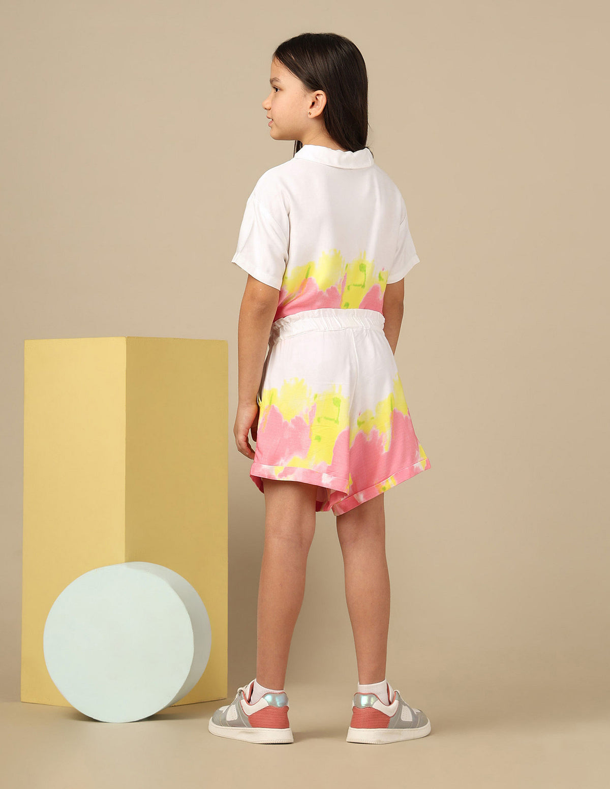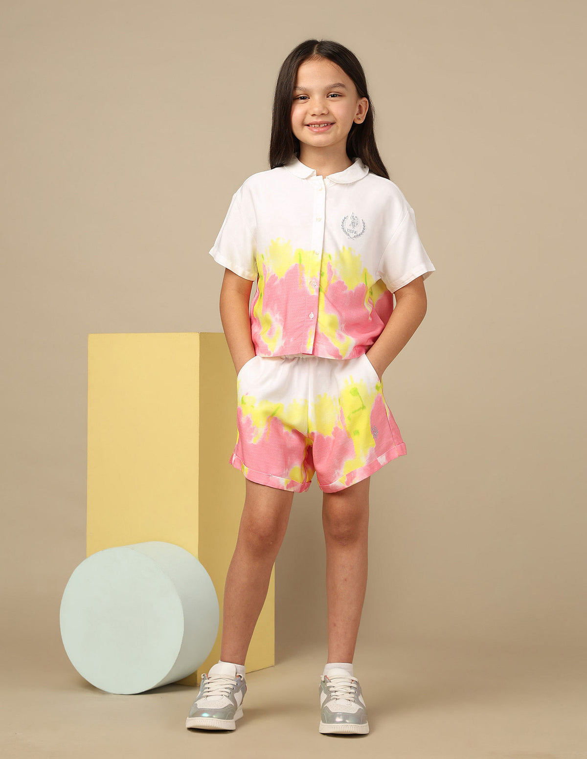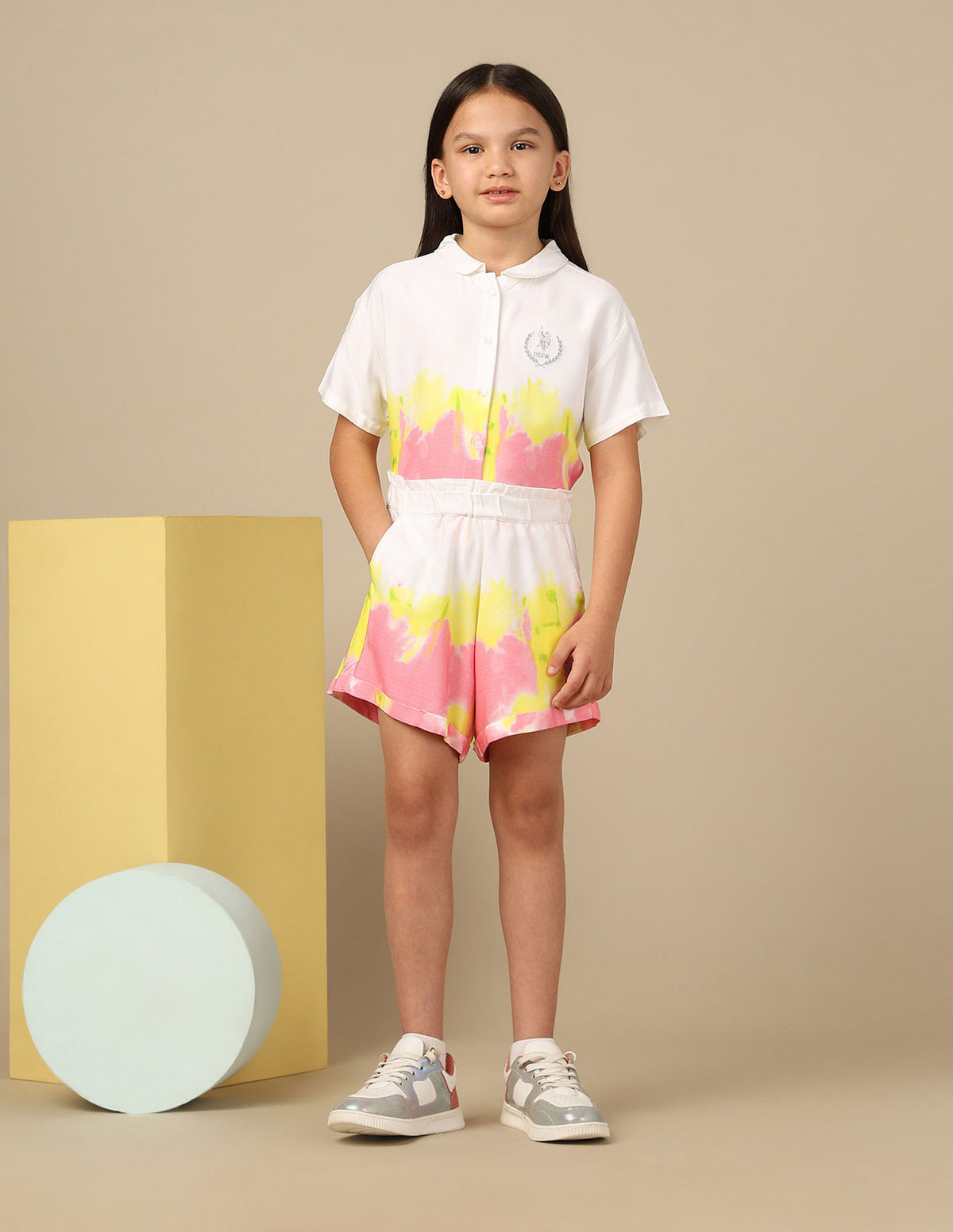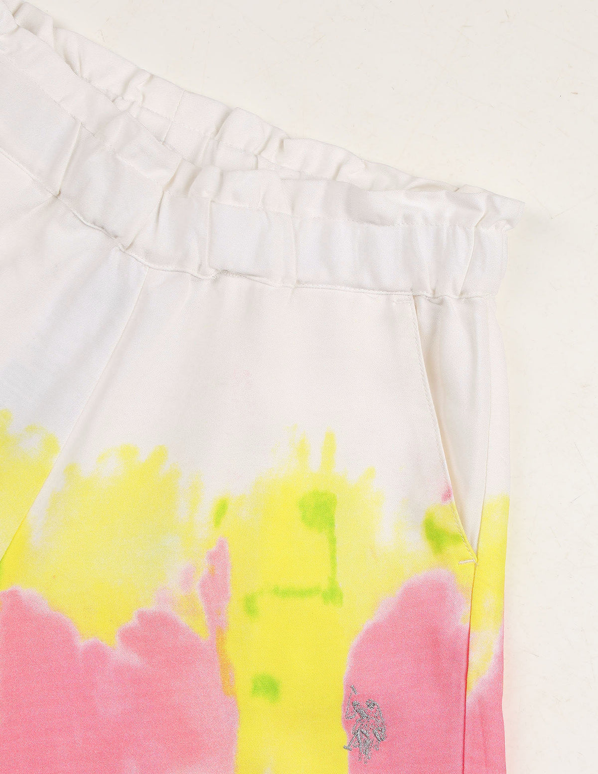 | Mid-rise waist | Button closure with zip fly closure | Two pockets | Tie-dyed pattern | Regular fit |