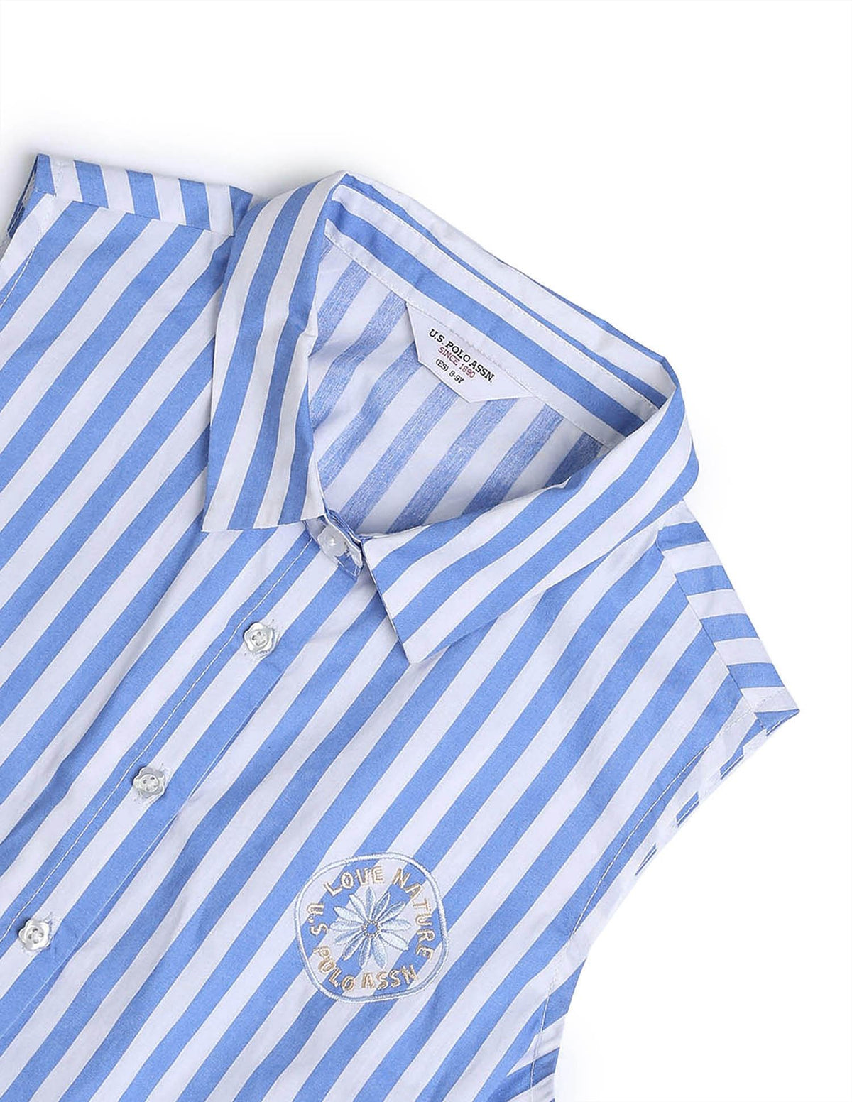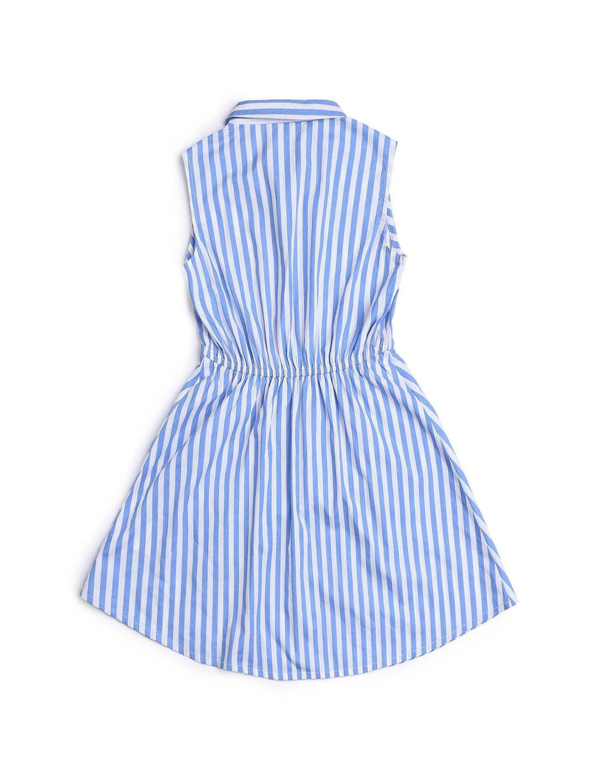 | Shirt collar | Button closure | Sleeveless | Vertical striped pattern | Regular fit |