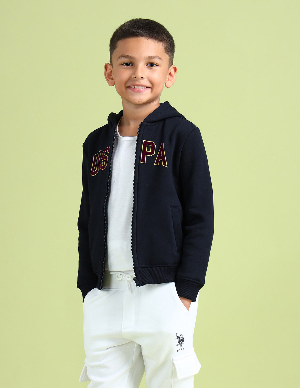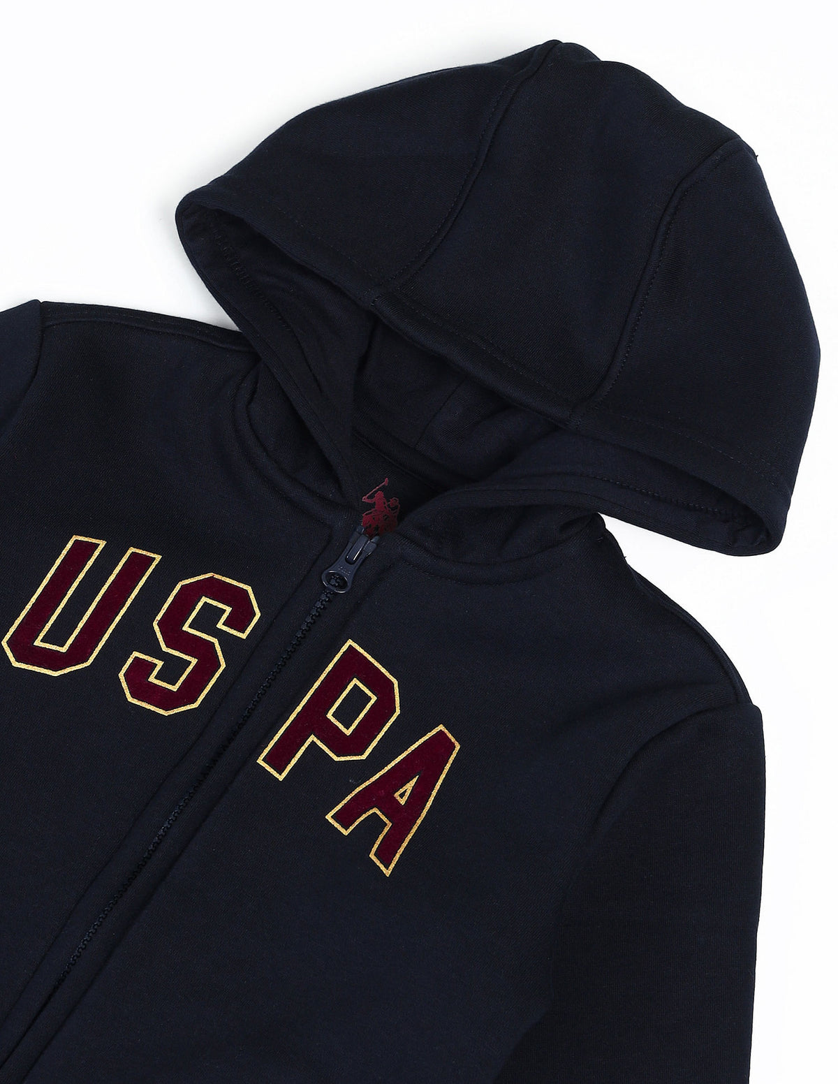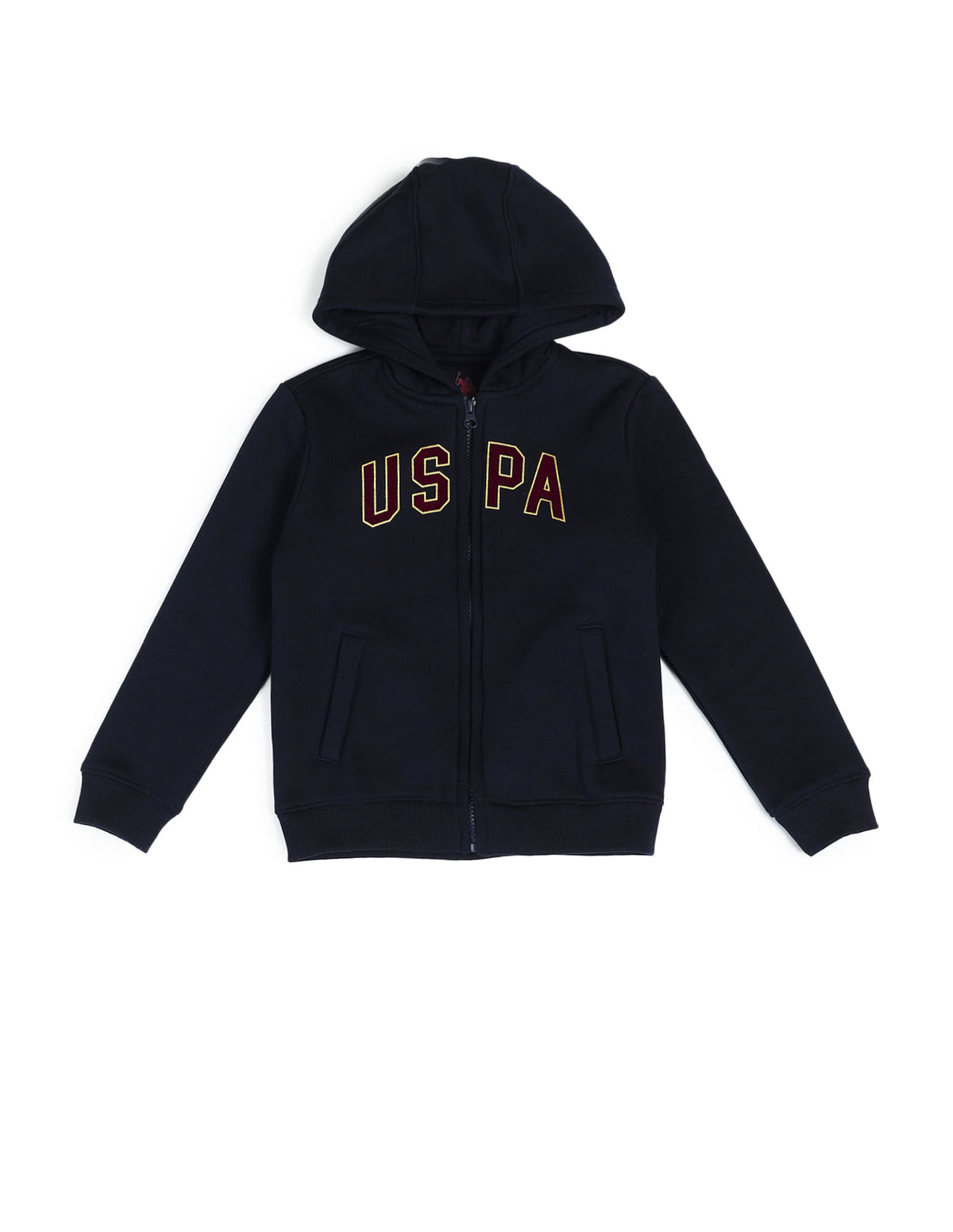 | Hooded | Logo at chest | Full zip closure | Long sleeves | Ribbed sleeves hem and hemline | Two pocket styling | Logo printed pattern |