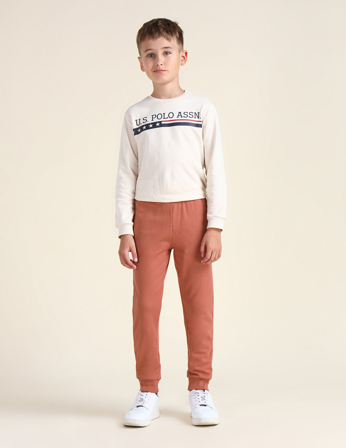 | Mid-rise | Elasticized drawstring waistband | Logo at front | Two side pockets | Ribbed ankle hems | Colourblocked pattern | Knitted | Regular fit |