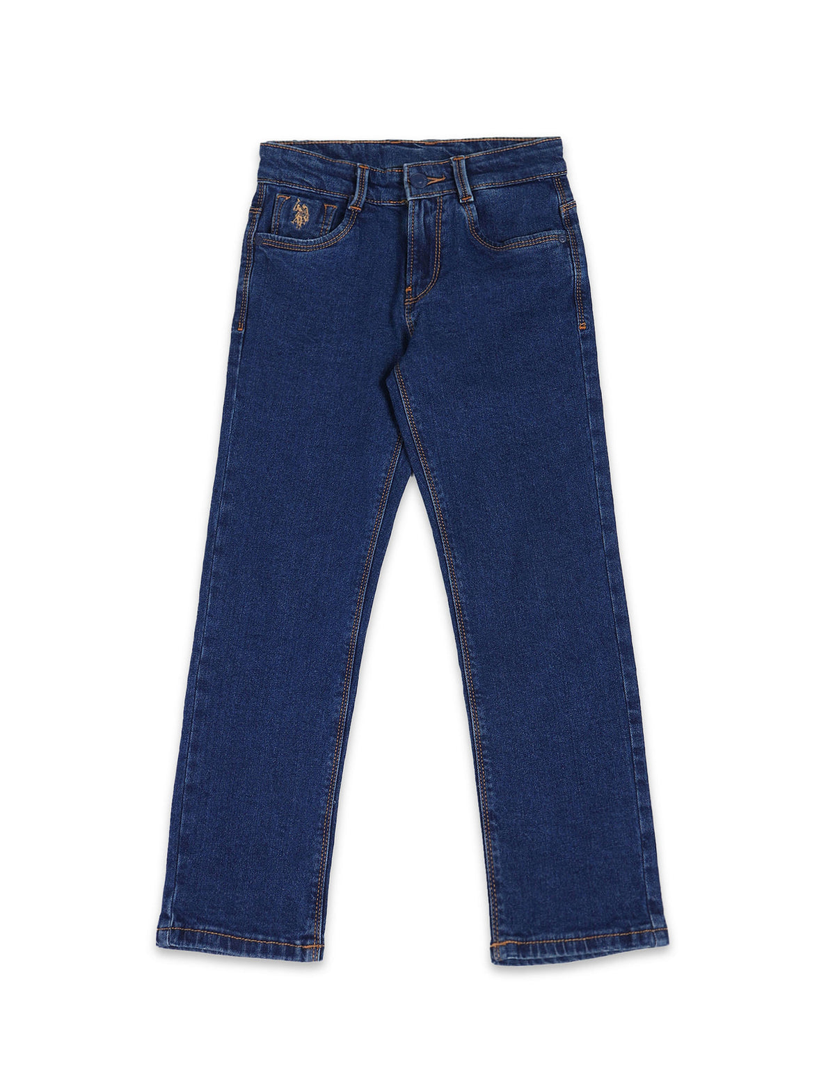 | Mid-rise waist | Button and zip fly closure | Five pockets | Dark washed | Denim weave | Relaxed fit |
