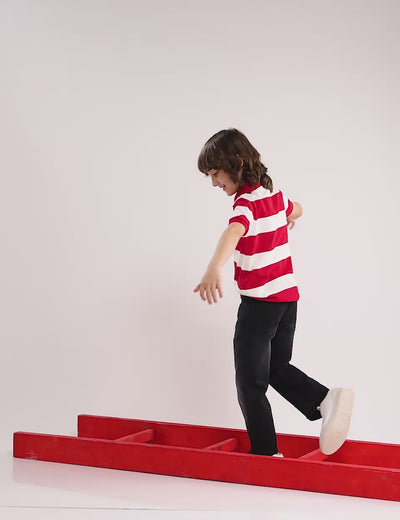 Story: Relaxed fit jeans for boys in whiskered, stretchable cotton, offering casual comfort with a laid-back silhouette—perfect for everyday, easygoing style.