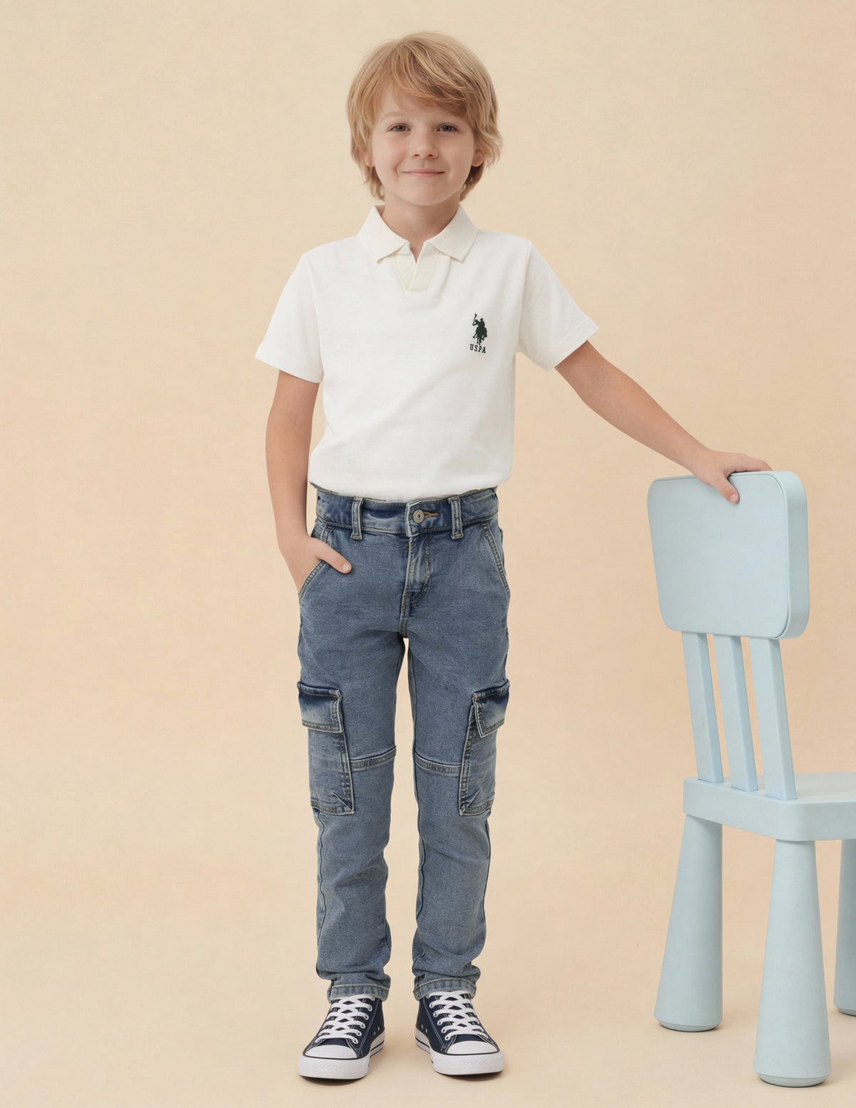Slim Fit Mid Rise Cargo Jeans