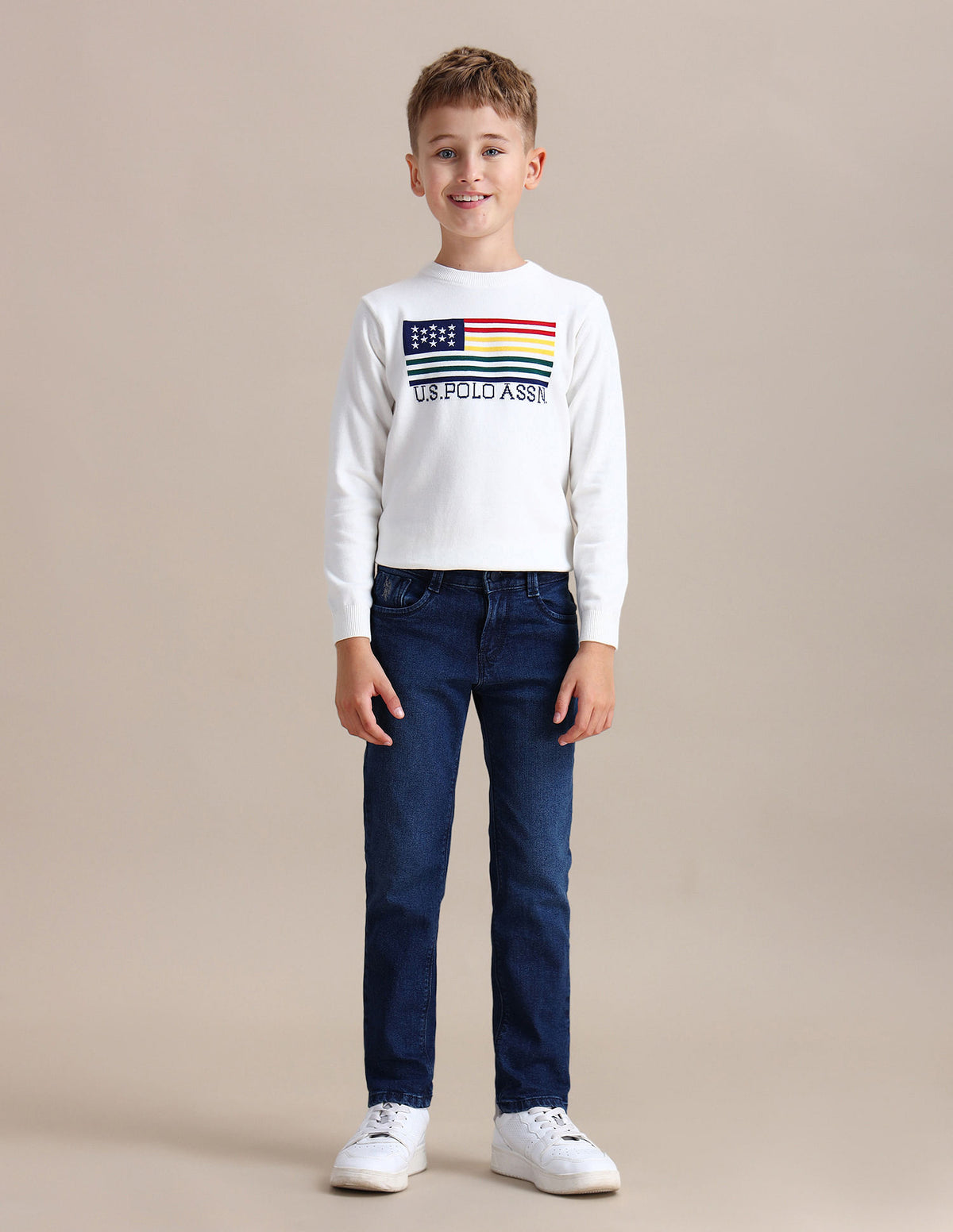 | Mid-rise waist | Button closure with zip fly | Five pocket styling | Stonewashed | Denim weave | Slim fit |
