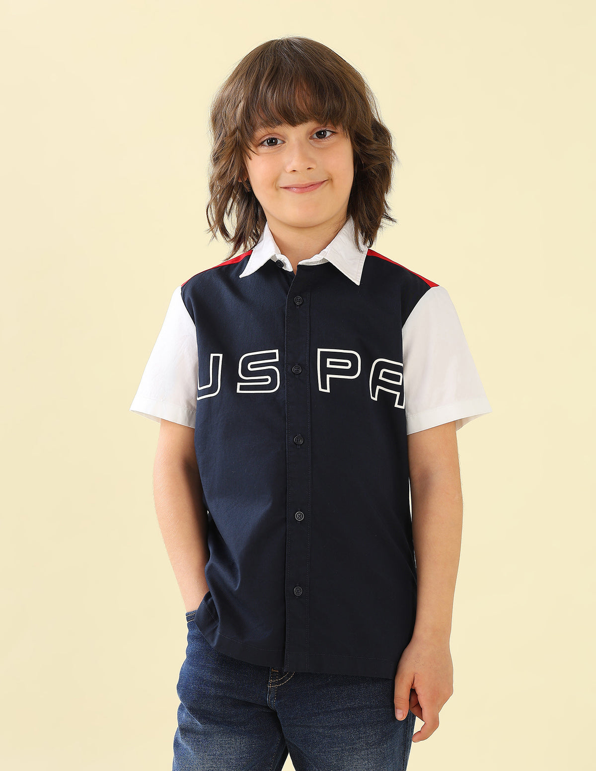 Twill Colorblocked Brand Printed Shirt