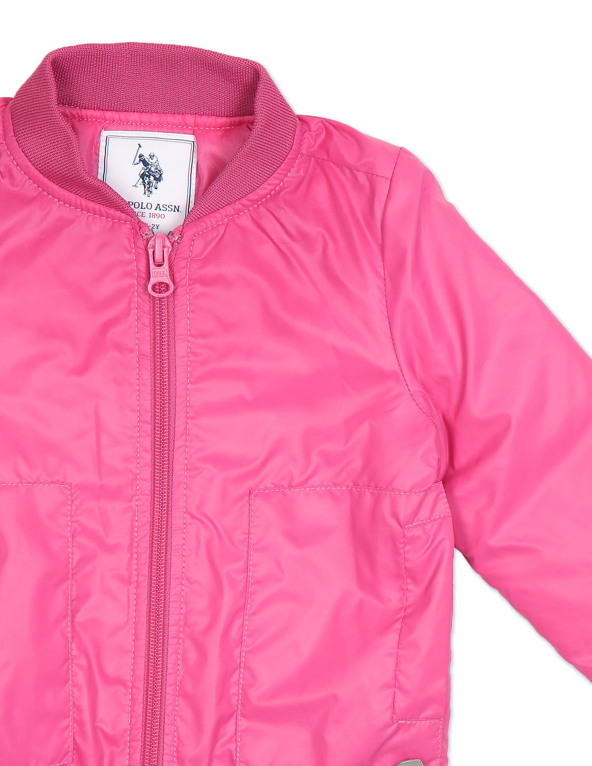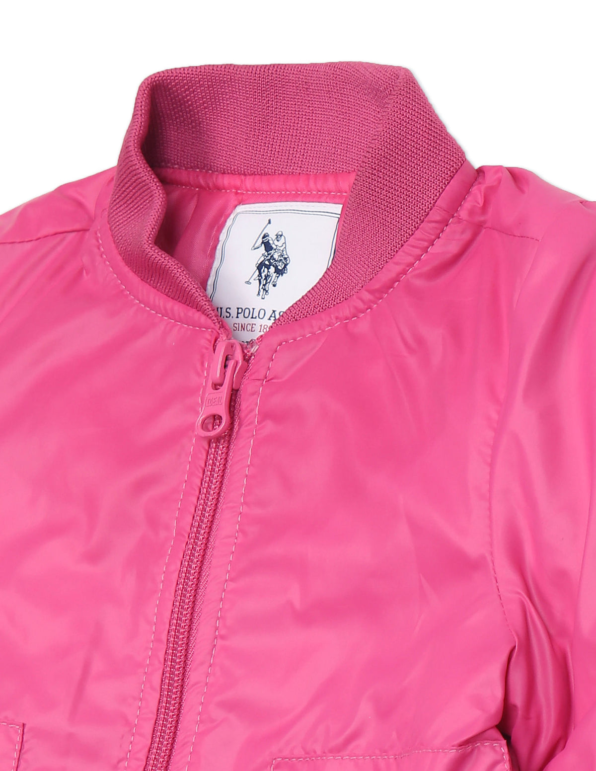 | High neck | Full zip-up closure at front | Long sleeves with elasticized hem | Two waist pockets | Straight hemline | Solid