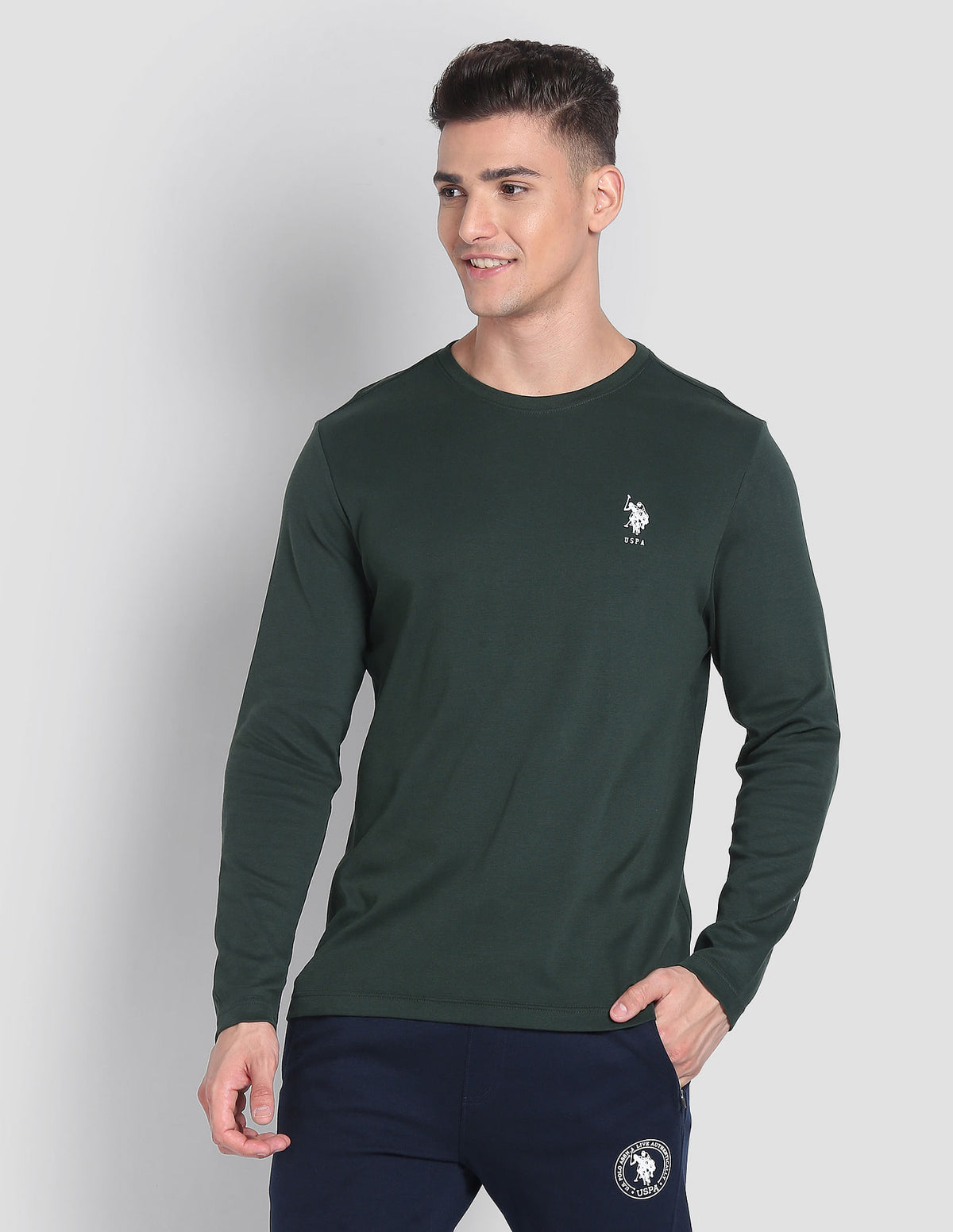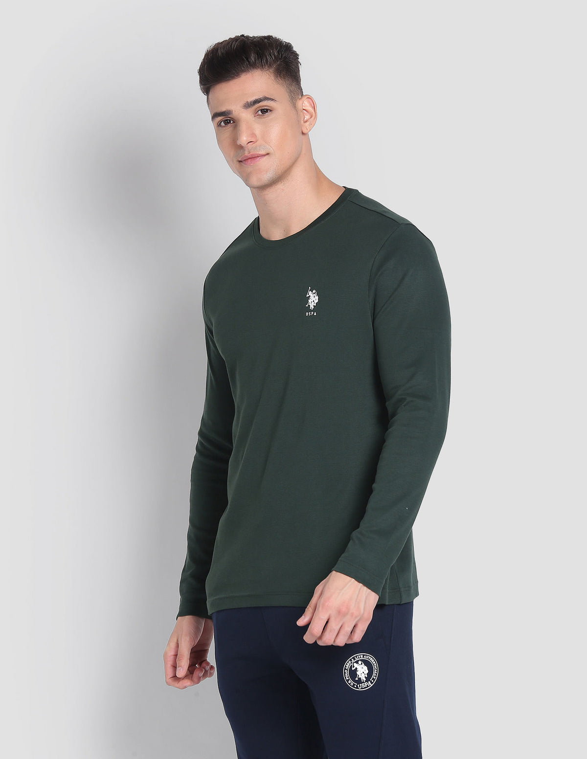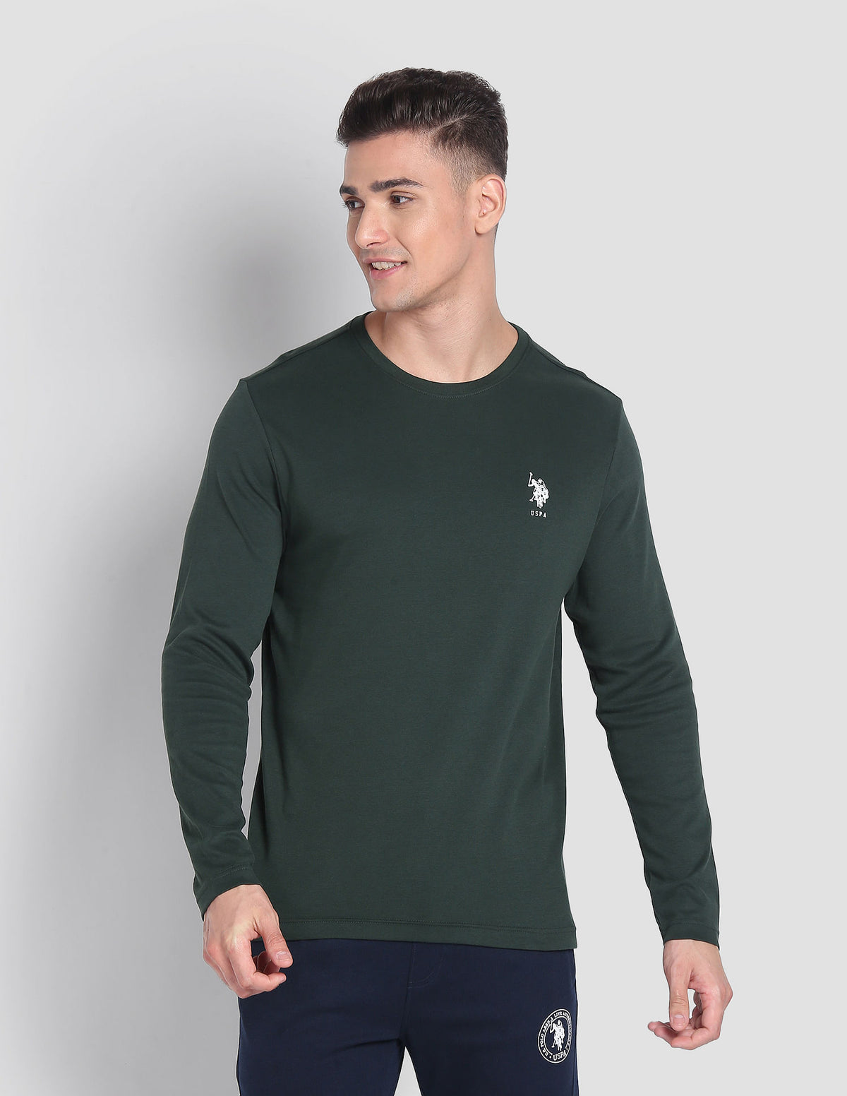 Story: U.S. Polo Assn.'s solid tee is cut from cotton that's soft against the skin and has a crew neck and long sleeves.